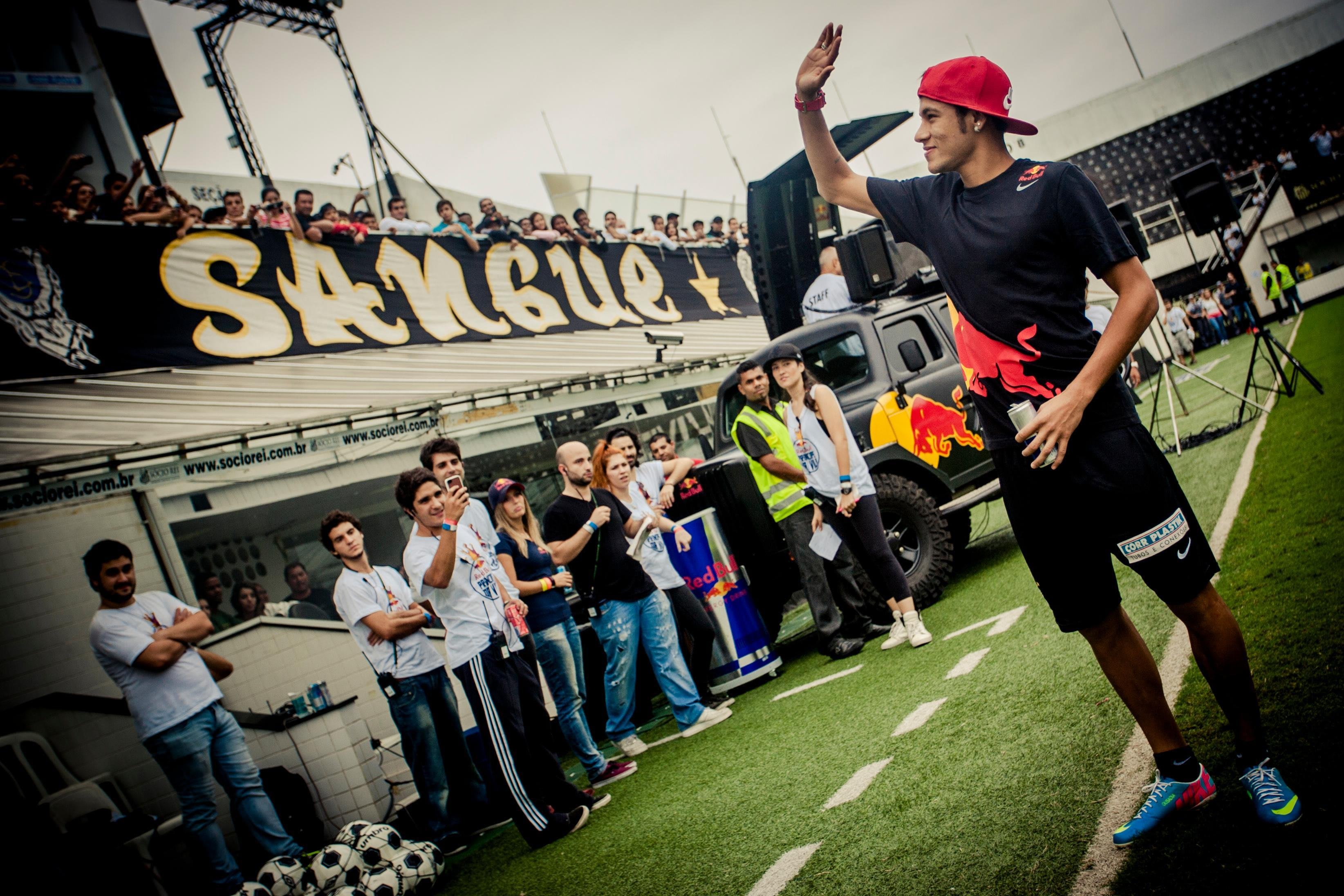 네이마르는 레드불의 후원을 받는 축구 선수입니다. 2011년부터 3년 연속 레드불 관련 행사에 참여하며 인연을 맺었죠. 2011년 10월 레드불 스트리트 스타일(Redbull street style, 프리스타일 축구 대회)에서 자신의 축구공 묘기를 보여줬으며, 2012년 11월에는 레드불 행사의 일환으로 웨이크보드의 신동 페드로 칼다스와 함께 웨이크보드를 즐겼고, 2013년 4월 레드불 프린시페 다 빌라(Redbull Príncipe da vila, 축구공으로 표지판 맞추는 대회)에서는 직접 시범을 보이면서 어린 선수들을 격려했습니다.