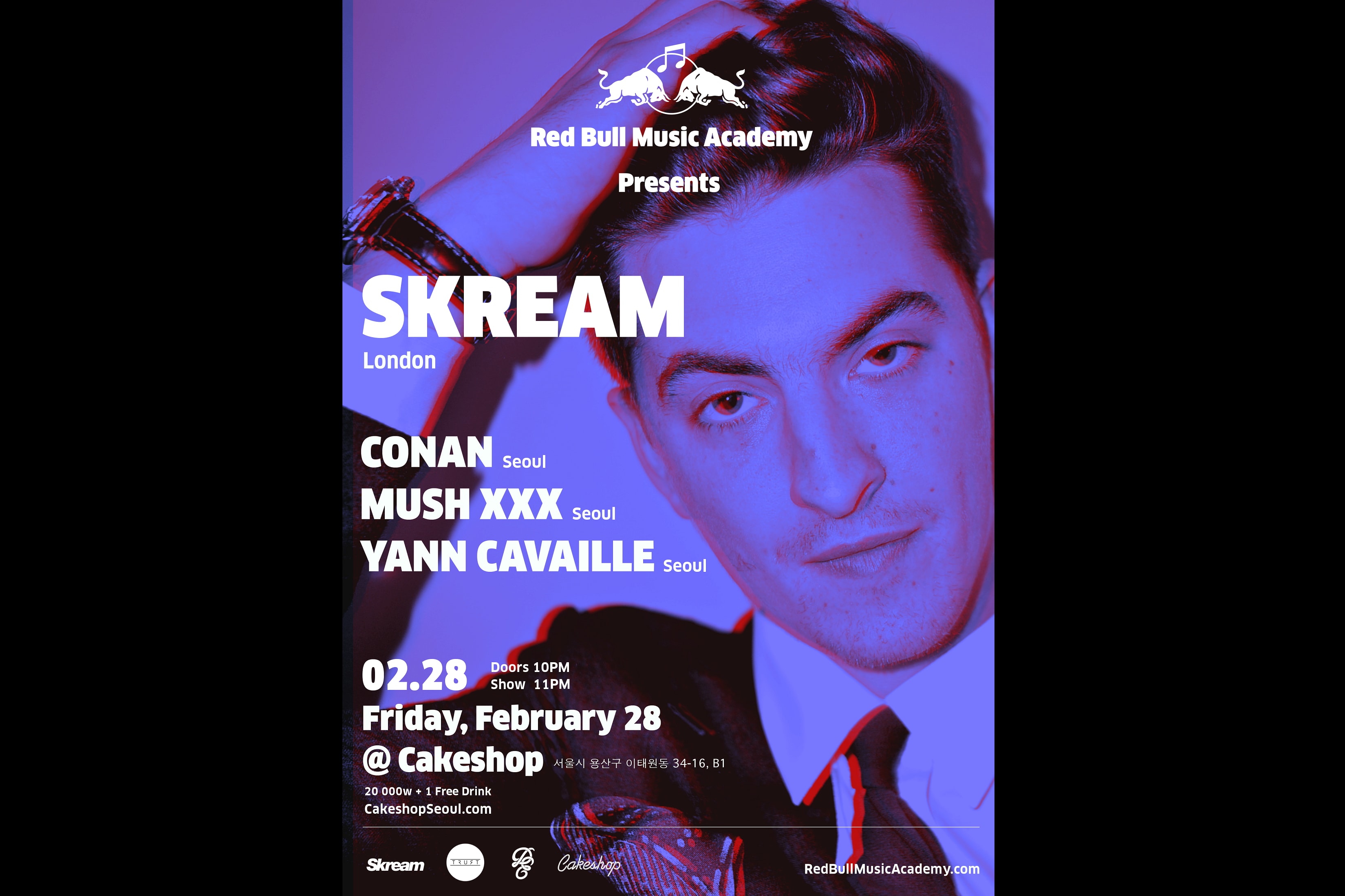 2013년 이후로 Skream은 디스코, 하우스 그리고 테크노에 그의 열정을 보여주는 동시에, 프로덕션과 DJing에 새롭게 접근하는 방식을 발견하였습니다. 한국을 처음 방문하는 그는 이태원 Cakeshop에서 열리는 클럽 나이트에서 그의 새로운 4/4 음악 스타일을 선보일 것입니다.
