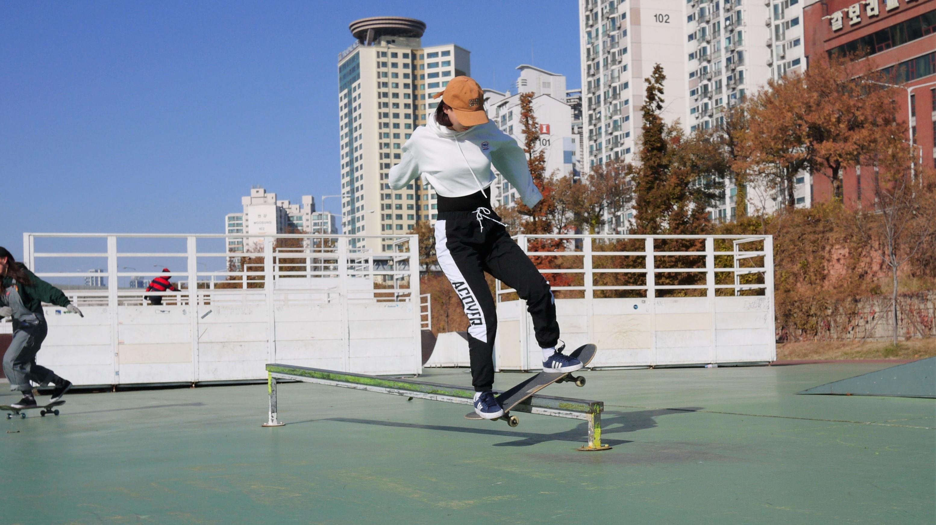 차이점이라고 한다면, 한국의 스케이트보드 문화는 4계절이라는 외국과는 다른 환경이 만들어낸 날씨 변화에 따라 스케이터들이 대응하는 마인드가 다르지 않을까 싶어요. 여름이면 빗물을 닦고 마를 때까지 기다리며, 겨울이면 장갑을 끼고 눈을 치우면서 보드를 타죠. 그렇기 때문에 다같이 새로운 것 새로운 장소를 찾고 나아가는, ‘함께’하는 문화가 구축되면서 외국보다 인간적인면이 더욱 짙은 것이 한국의 스케이트 문화의 특징이 아닐까 합니다.