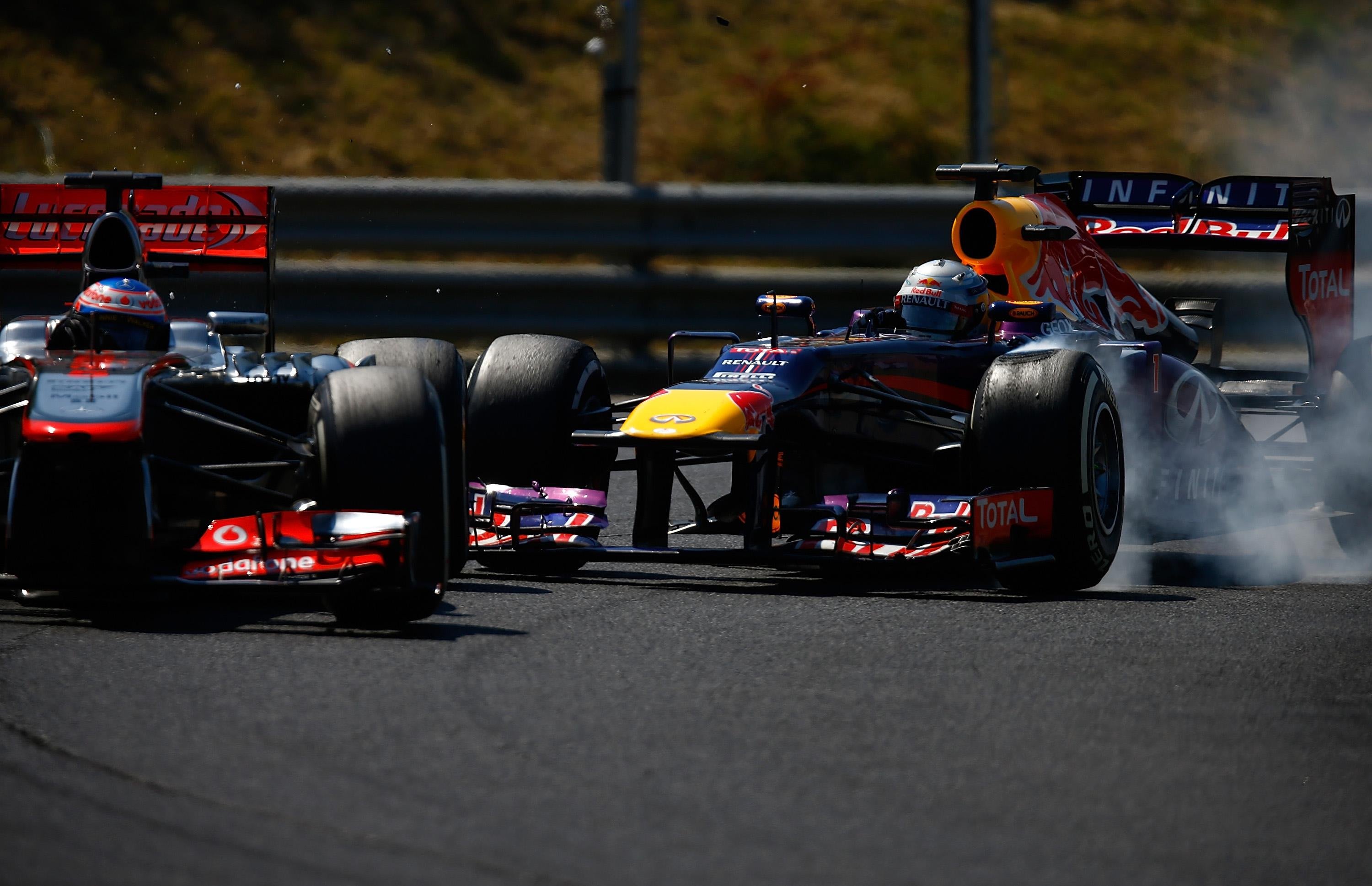 딜레미네이션은 ‘박리’라는 뜻으로 타이어 표면이 벗겨지는 현상을 뜻합니다. 자주 일어나는 현상은 아니지만, 2013년 영국GP에서 이런 현상이 일어나면서 일시적으로 문제가 되었던 적이 있습니다. 타이어는 스틸 혹은 케블라 구성된 벨트 위에 고무와 기타 혼합재를 섞어 접지면을 만드는데, 간혹 스틸벨트에 열이 심하게 전달되거나 혹은 결합 불량 및 기타 원인으로 인해 벨트위에 입혀놓은 고무가 떨어져나가는 현상이 일어납니다. 이런 현상이 일어나면 당연히 더 이상 달릴 수 없게 되겠지요.