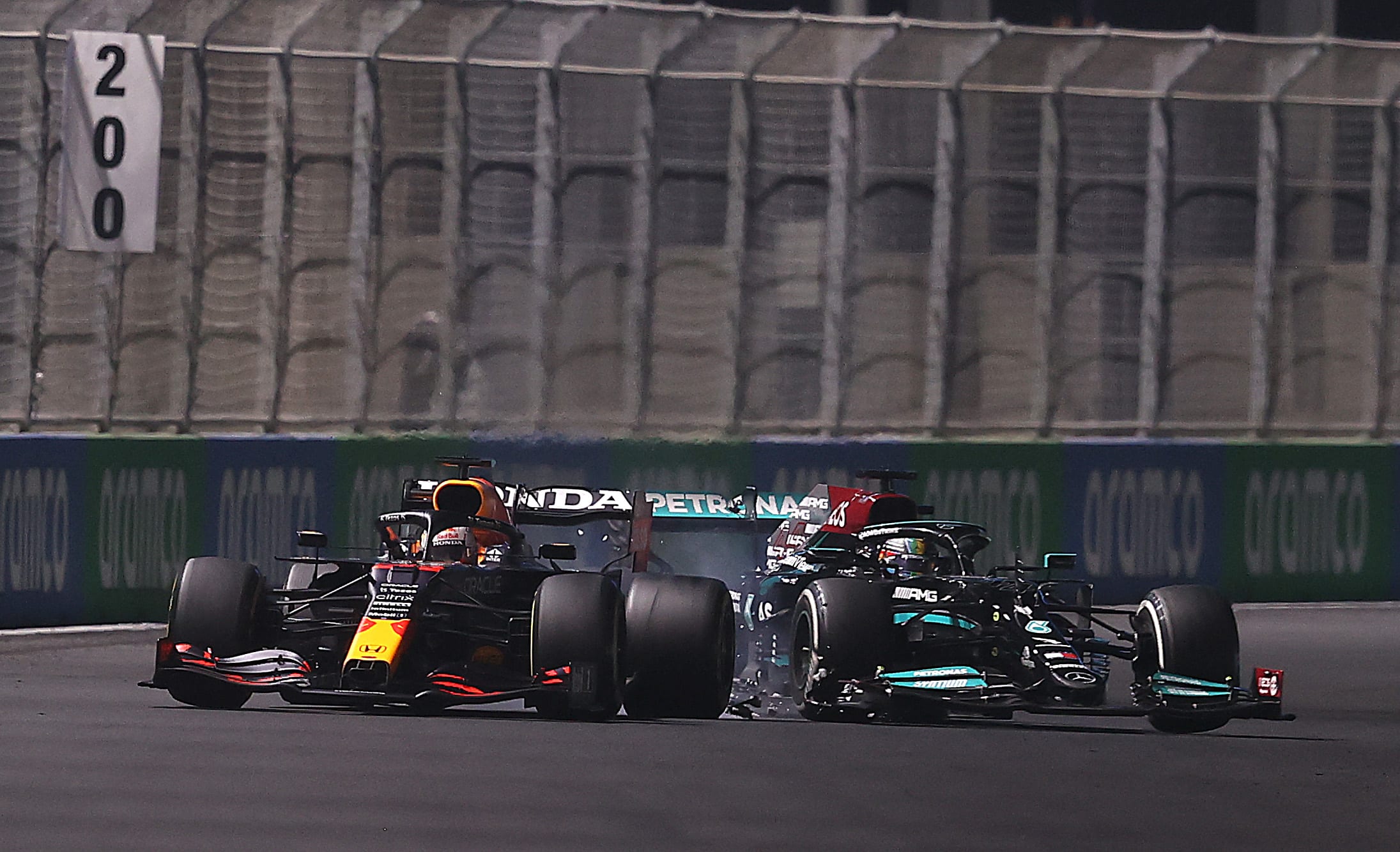 После очередного предупреждения стюардов Ферстаппен был вынужден уступить первенство пилоту Mercedes. Нидерландский пилот замедлился и сбросил темп для пропуска Хэмилтона, но тот врезался в заднюю часть болида Red Bull. К счастью, обе машины избежали серьезных повреждений.