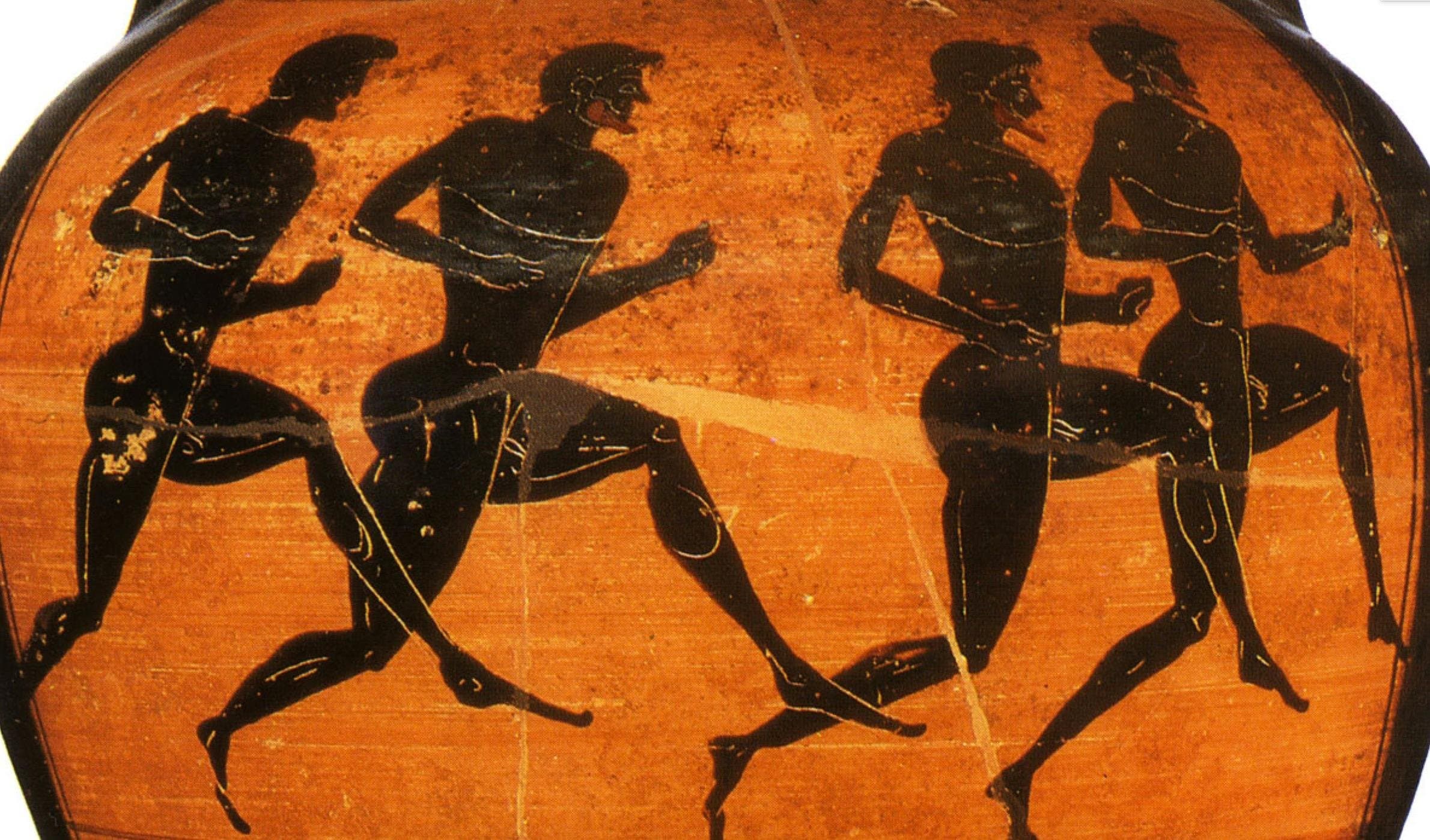 The first Olympics were held in 776 BC and consisted of just sport - the stade, a mid-distance run, made on foot, of around 210m. Later Games included wrestling, boxing, equestrian, discus, javelin and jumping. Ancient Olympians would compete in the nude: the word gymnasium comes from the Greek word root ‘gymnos’, meaning naked.