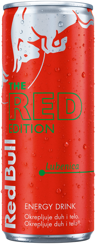 Една Red Bull Red Edition лименка од 250 мл содржи 27 г шеќери.