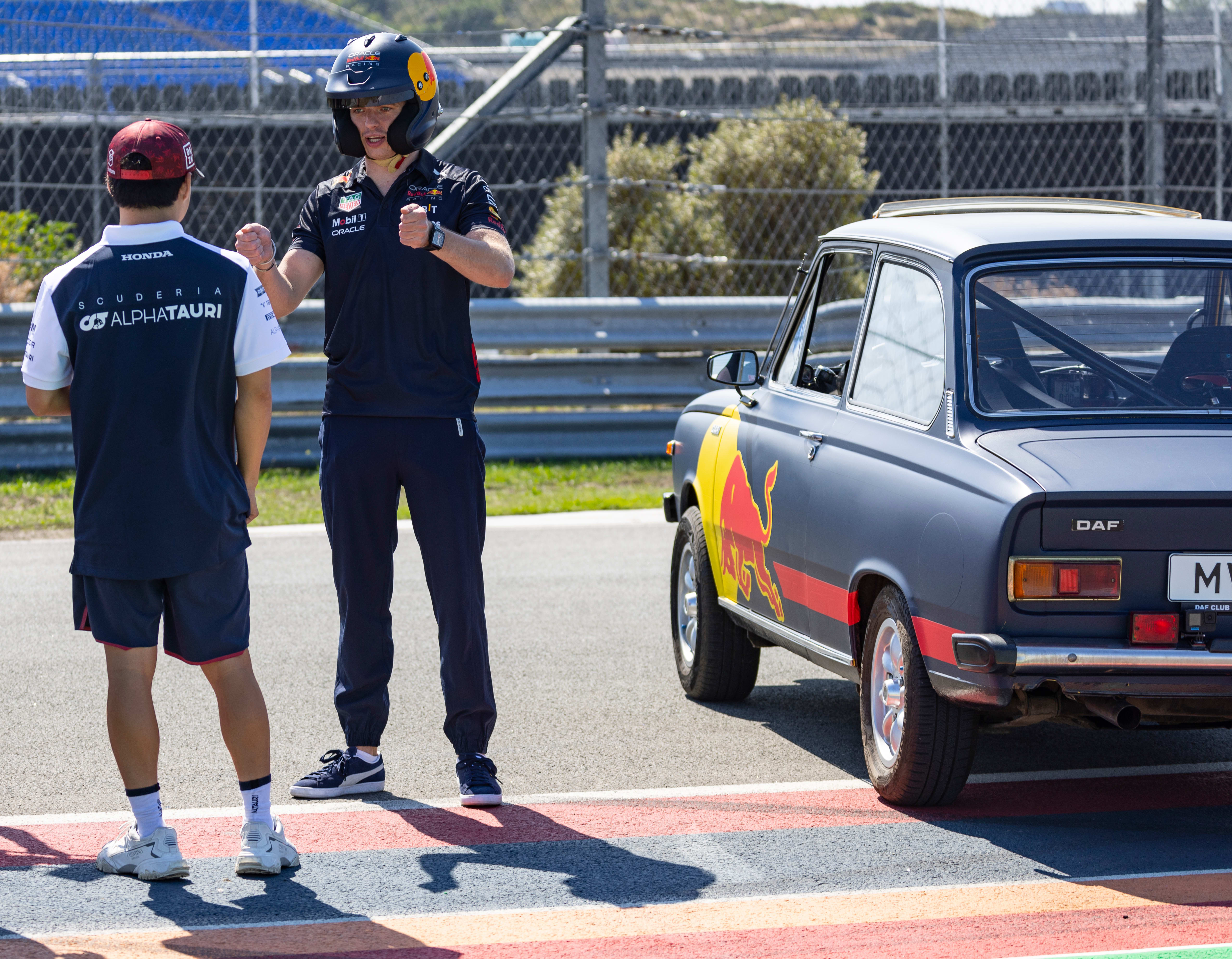 Two cars sit on the track at Circuit Zandvoort, primed and ready to go. They may be twice the age of Max Verstappen and Yuki Tsunoda, but according to their owner, Hans Rodenburg, they are in tip-top shape. Both vehicles boast a 1.4-litre engine that allows for a top speed of more than 70mph. It may not sound much to the pair of F1 drivers, but there's something very special about these classic Dutch cars.