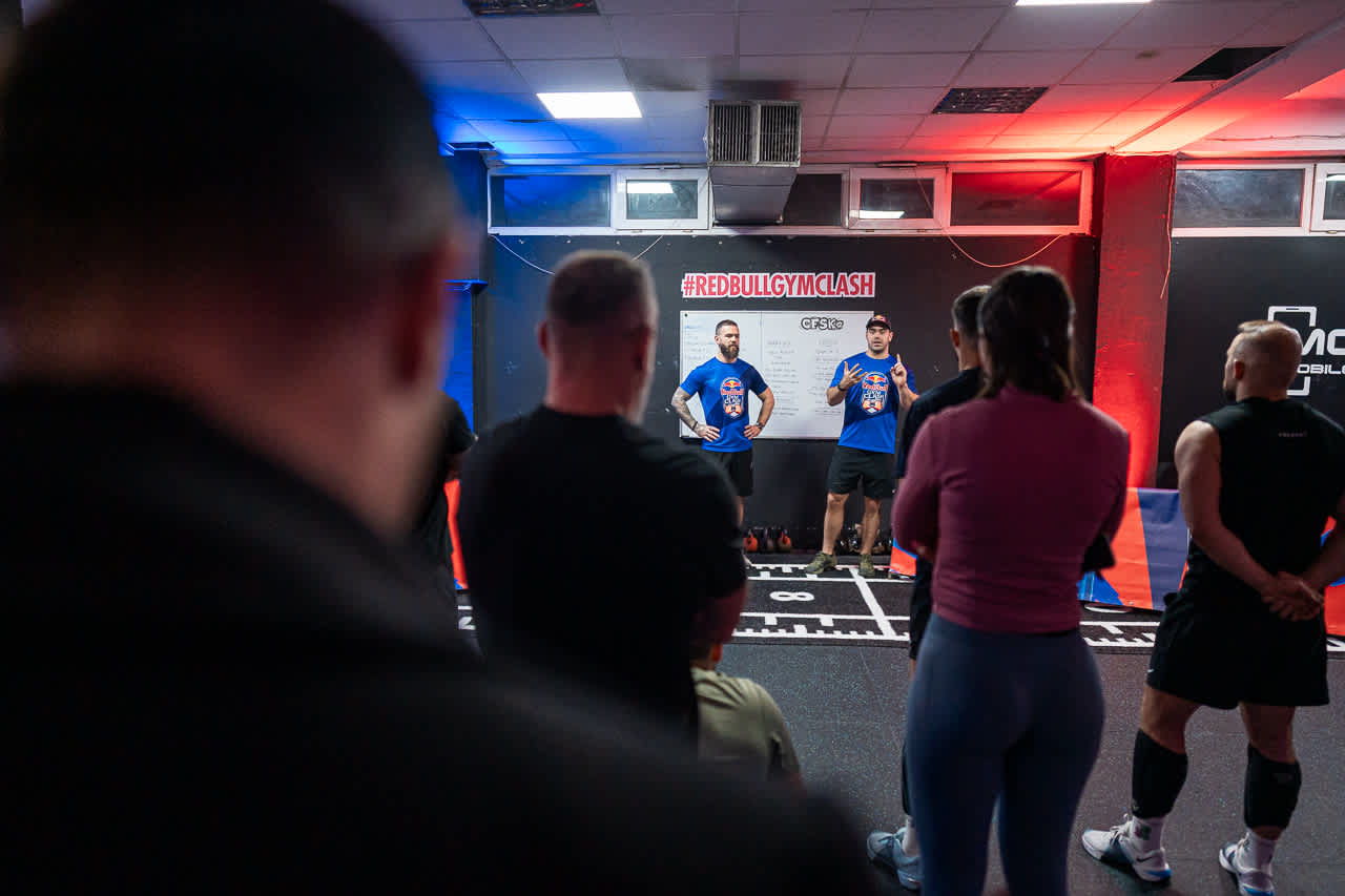 Во CrossFit Skopje преовладуваше силна тимска игра, јасна координација и високо ниво на борбеност и енергија што го дефинира Red Bull Gym Clash. На крајот од тренингот, следеа ледено ладни крилја и дополнителен простор сите прашања поврзани со Red Bull Gym Clash да добијат јасни и детални одговори.