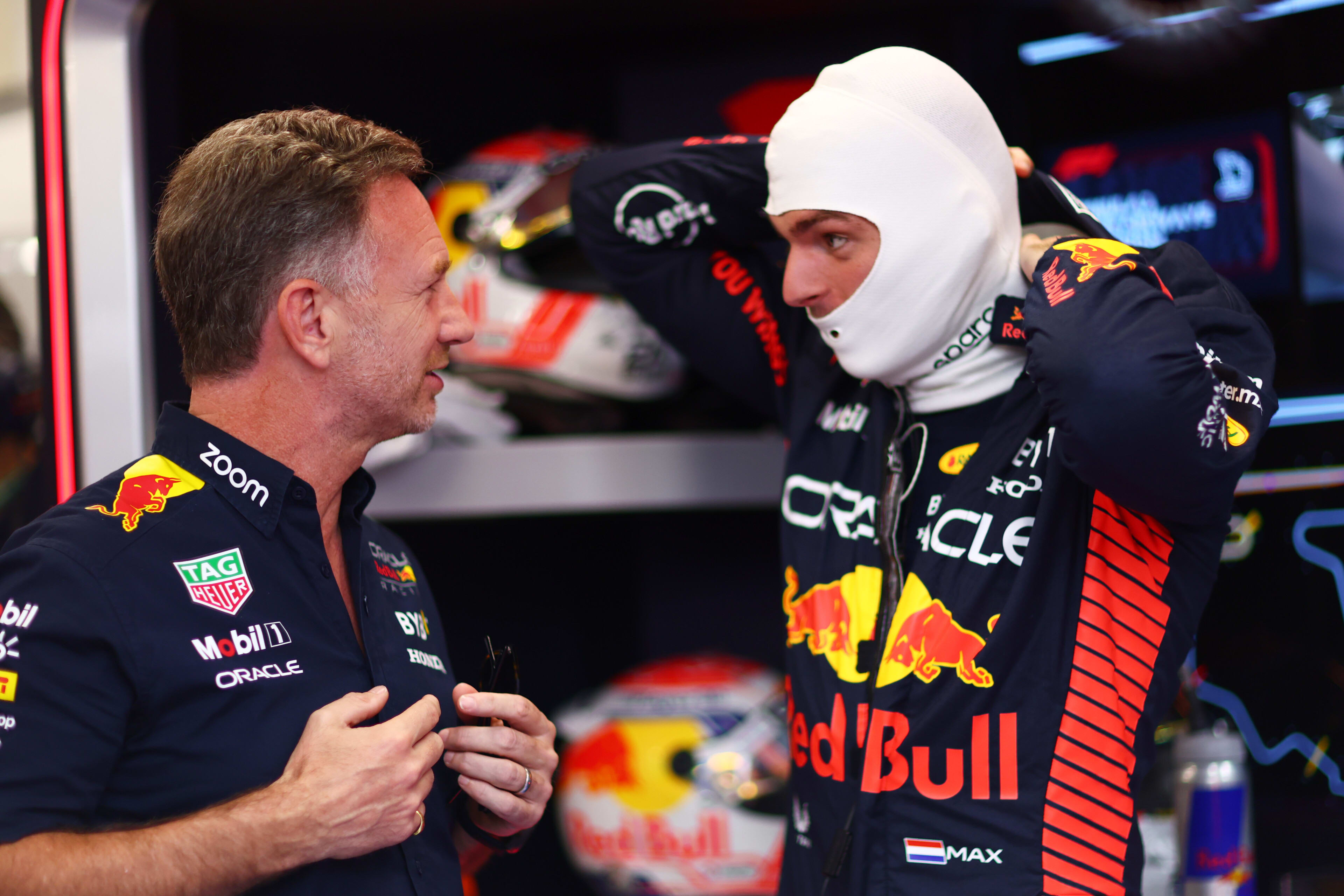 Christian Horner speaking with Max Verstappen at the Hungarian Grand Prix