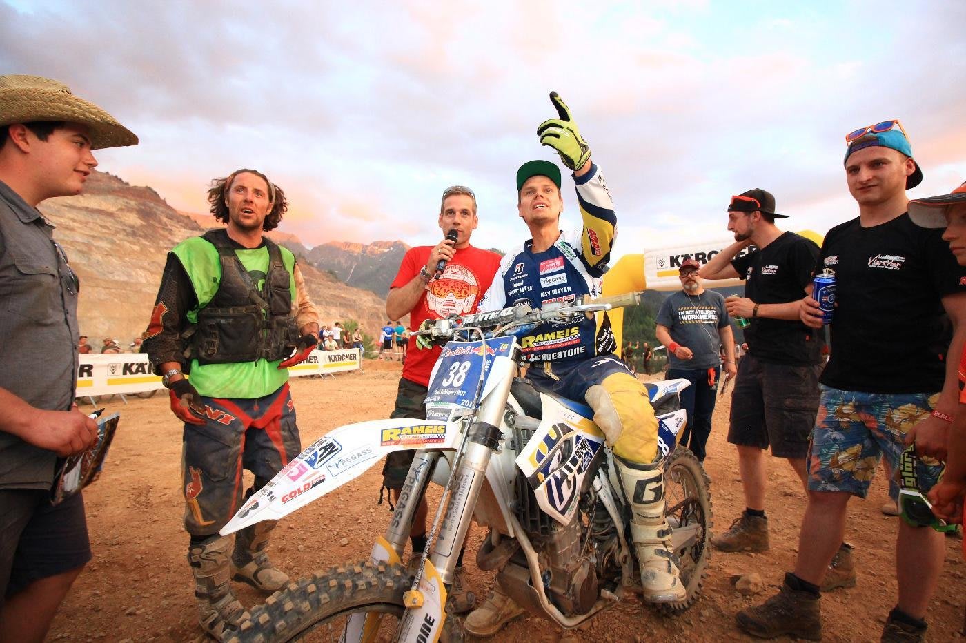 Mientras que los ‘Pros’ se preparan para su primera prólogo, los aficionados arrancan la jornada con un poco de ‘diversión’. Como es de esperar, hay caídas y caos pero, después de todo, esto es parte de la ErzbergRodeo, ¿no? Pero no os engañéis, cuando cae la valla de salida de la Rocket Ride, la competitividad entre los pilotos es equivalente a la Red Bull Hare Scramble.