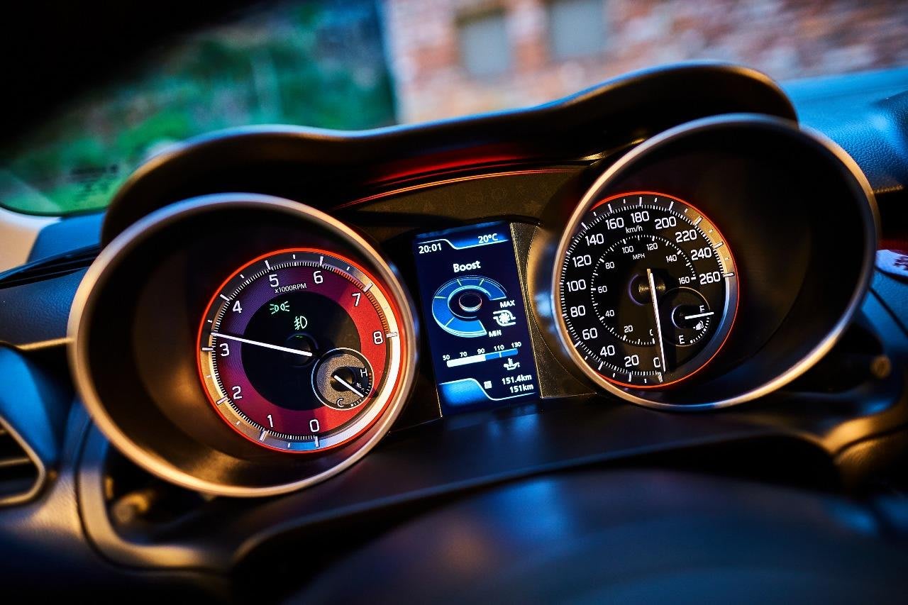 El tema de seguridad en un deportivo es vital. La marca japonesa decidió ponerle seis bolsas de aire, discos de frenos una pulgada más grande que la generación anterior, ABS, control de estabilidad electrónico. Para los amantes de los gadgets, tendrán una pantalla de 7” con sistema de navegación, conectividad CarPlay y Android Auto. Lo que tendrás frente a ti en medio de los relojes del velocímetro y tacómetros, será una pequeña pantalla que te desplegará varios submenús que incluirán el comportamiento del Boost del turbo, aceleraciones laterales, el comportamiento de la potencia y del par motor, entre otras más opciones.