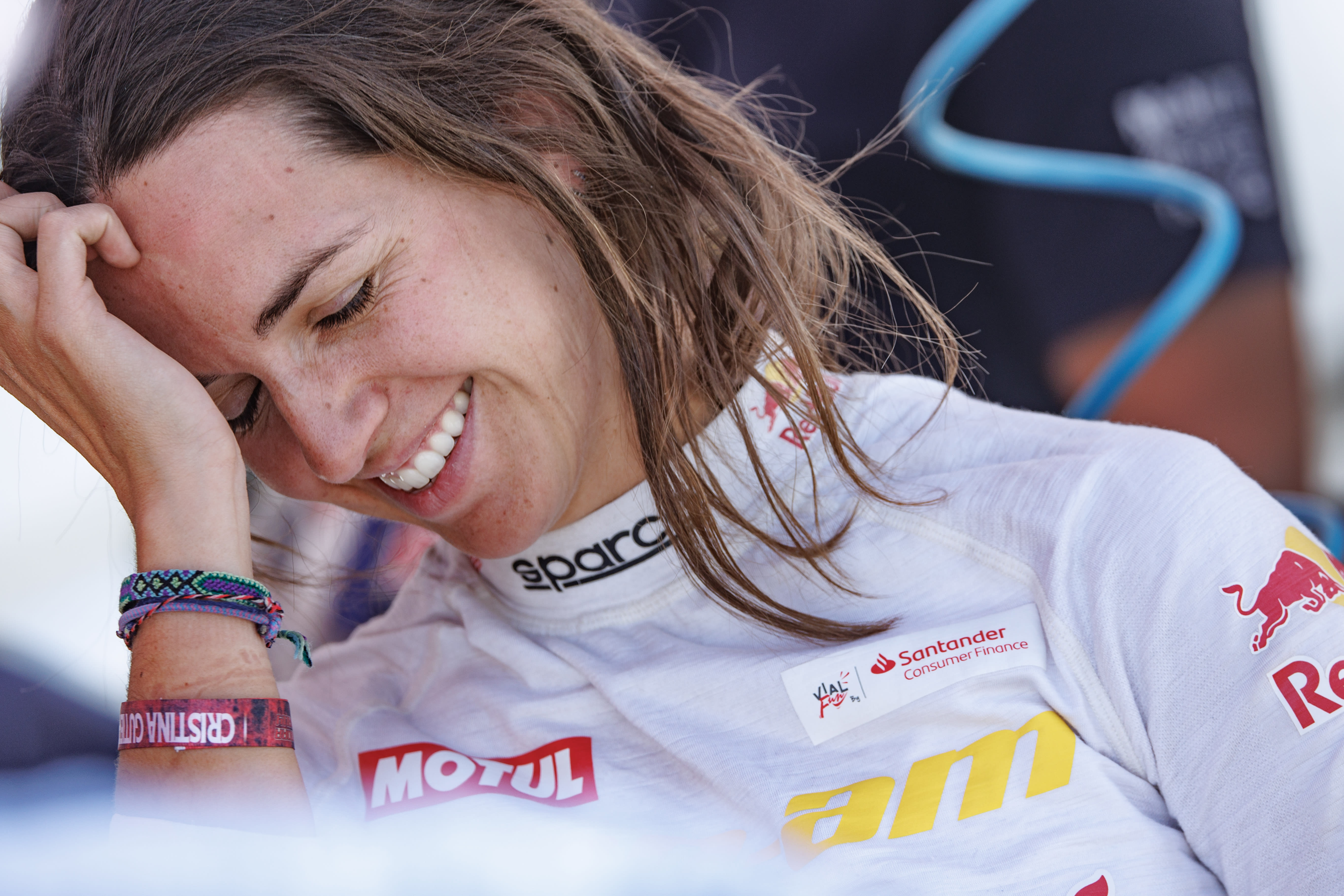 Cada vez que acabamos una etapa me gusta meterme en la caravana y aislarme de todo con mi música relajante mientras hay un momento ‘skincare’; un poco de limpieza de cutis tras el largo día y dedicar tiempo a mi pelo con champú, mascarilla y cepillado. Respecto a amuletos de la suerte siempre llevo una piedra de luna que me encanta y me da mucha energía.