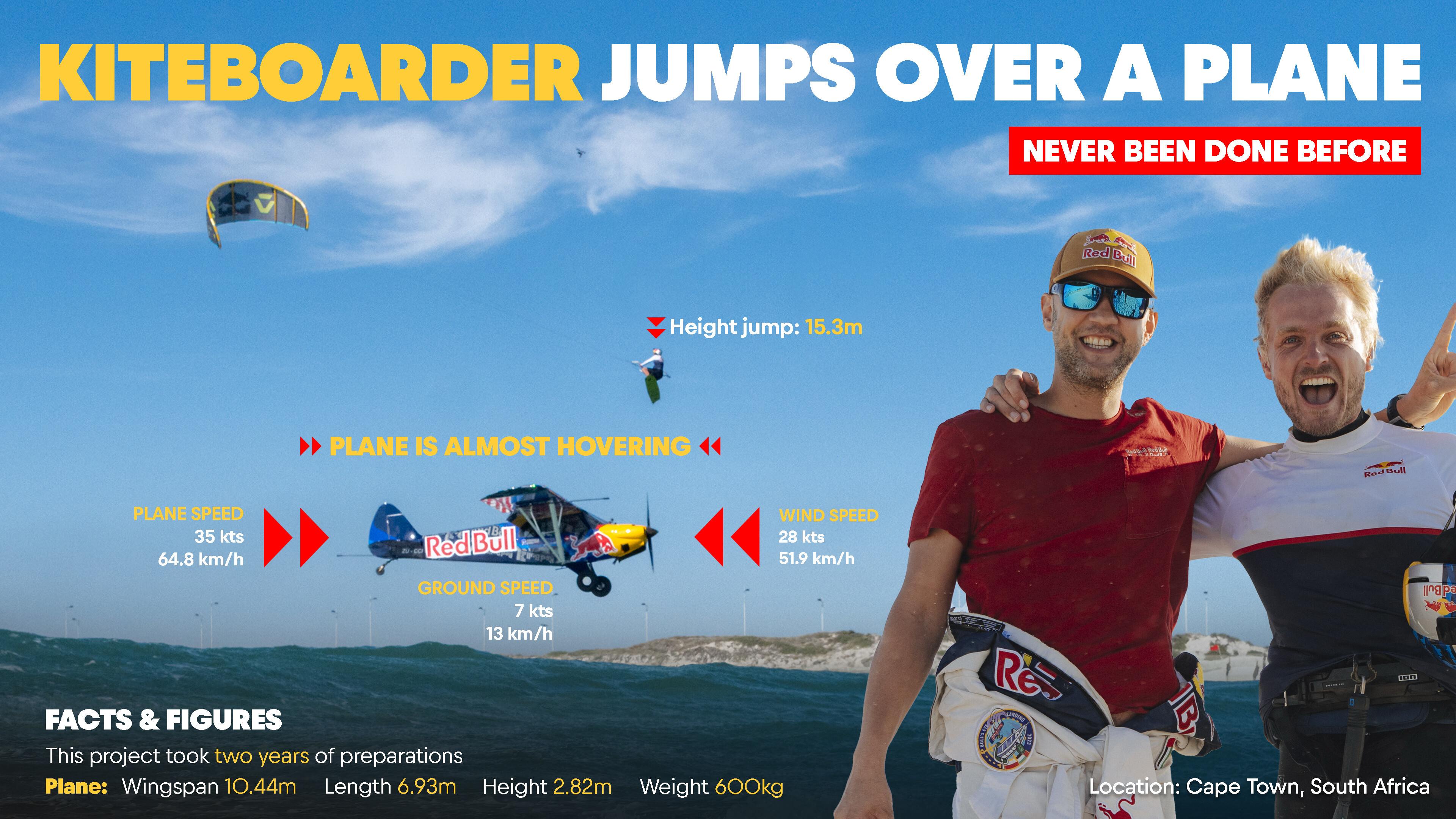 El kitesurfista Lasse Walker realizó una hazaña sin precedentes al completar un impresionante salto sobre el avión del magistral piloto de Red Bull Air Race Łukasz Czepiela cuando éste realizaba un vuelo rasante en Ciudad del Cabo (Sudáfrica).