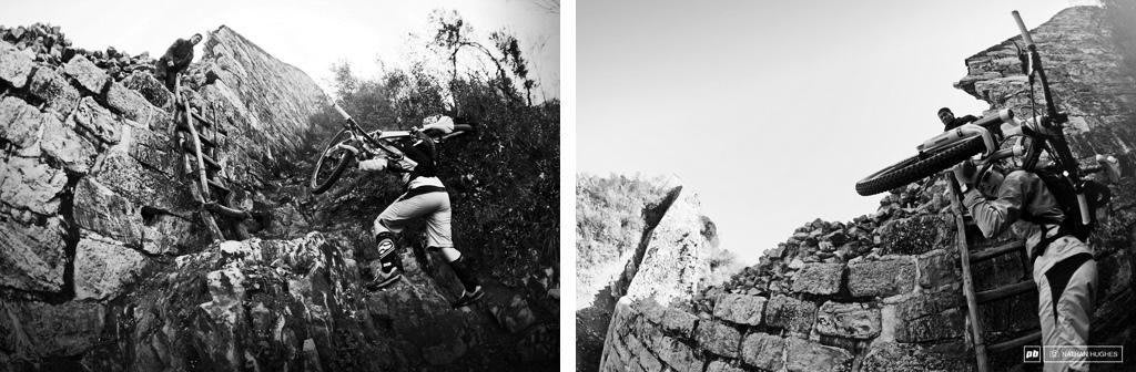 Es difícil pasar por ciertas zonas, debido a la altura, terreno, paredes que se atraviesan y en ocasionas hay que cargar la bicicleta en los hombros para poder seguir el recorrido antes de que el sol se vaya y todo el camino se inhunde de sombra.