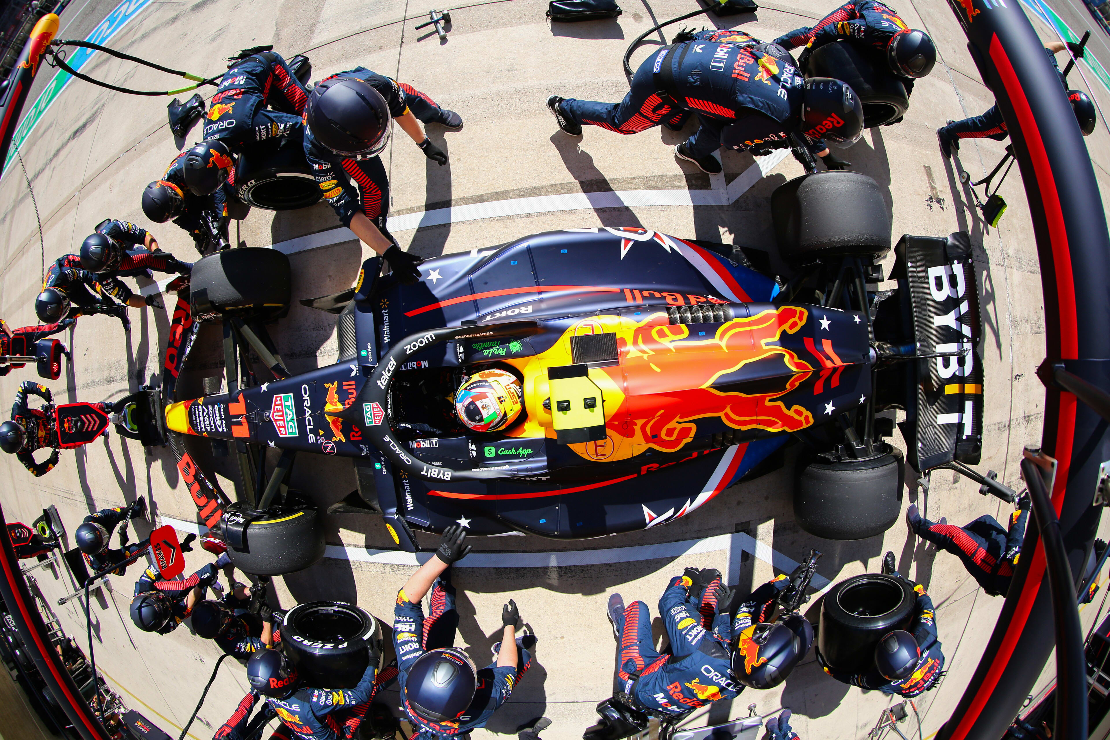 No, sólo hay espacio para una parada en boxes por equipo a la vez. Si Max y Pérez entran al mismo tiempo, el de atrás tiene que esperar a que termine el de delante. Así que, si eso ocurre, es que algo no se ha coordinado correctamente con la dirección del equipo. En Red Bull Racing, Christian Horner es el jefe del equipo y con el inglés Horner, Red Bull Racing ha ganado siete Mundiales de Pilotos: cuatro de Sebastian Vettel, tres de Max Verstappen; y seis Campeonatos del Mundo de Constructores.