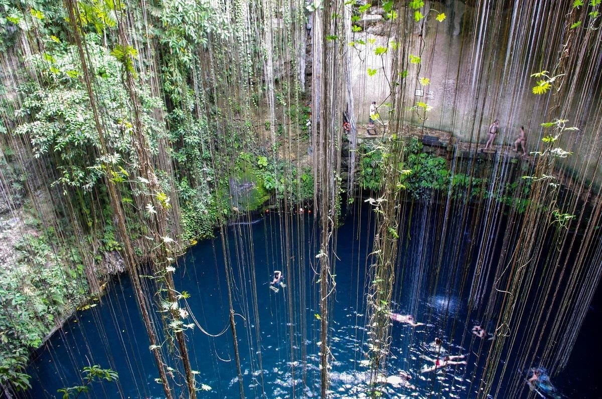 A 3 km de Chichén Itzá se encañona un cenote con 27 metros de altura que terminan en agua cristalina y fría, una especie de tanque de 39 metros de profundidad que es hogar de algunos bagres.