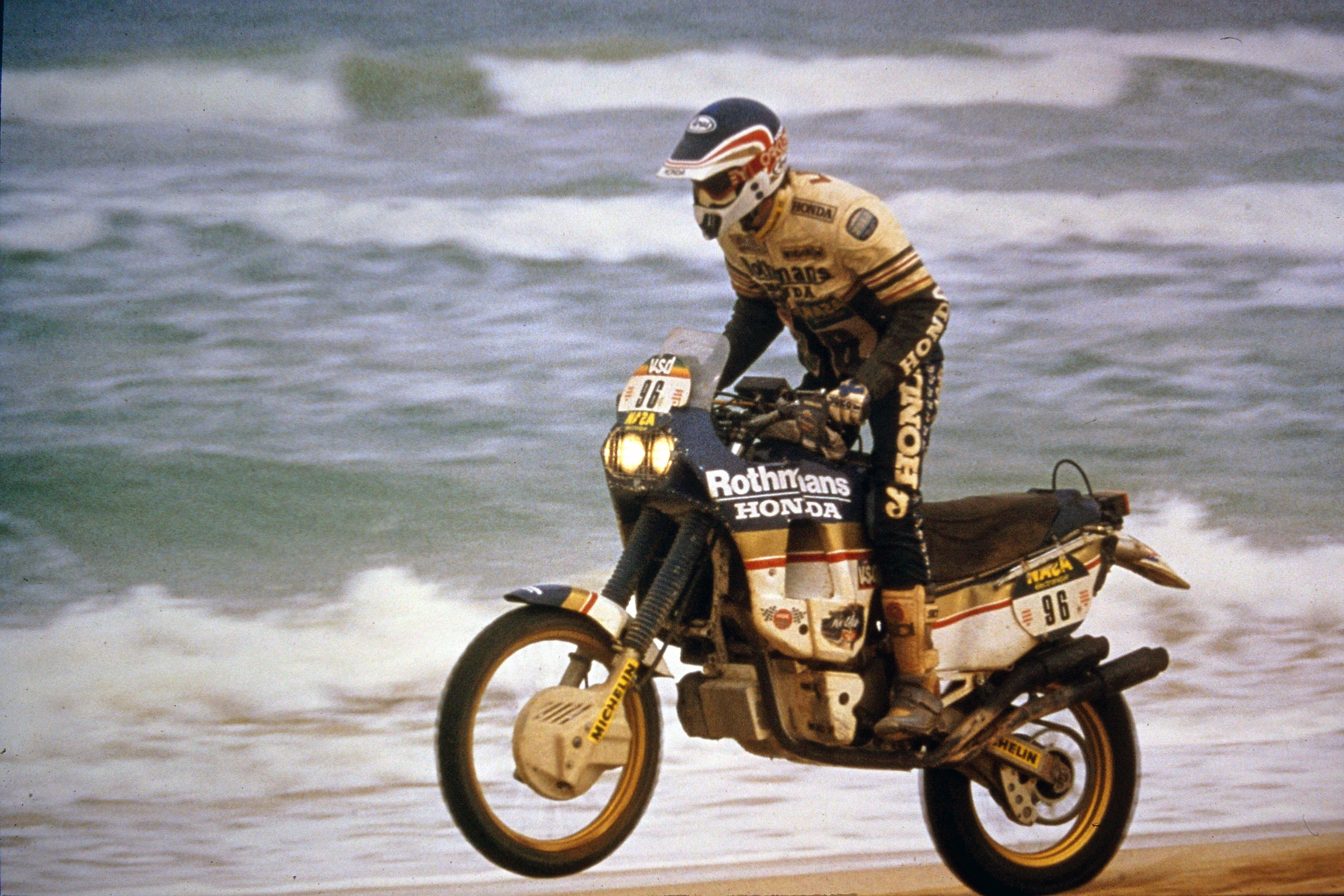 Para nosotros, la Honda NXR750V es el arquetipo de las motos del Rally Dakar de la década de 1980. Mientras el París-Dakar fue dominado por motos BMW en los últimos años de la década de los 70 y primeros de los 80, la NXR parecía que venía del espacio con sus agudos y extraños ángulos, cuerpo elefantino y sus curiosas luces delanteras que sugerían la ingeniería robusta que se escondía bajo los colores del equipo Rothmans. Las NXR ganaron el Dakar de 1986 a 1989 de forma consecutiva y es, sin duda, la abuela de las motos de los rallies raid de hoy.