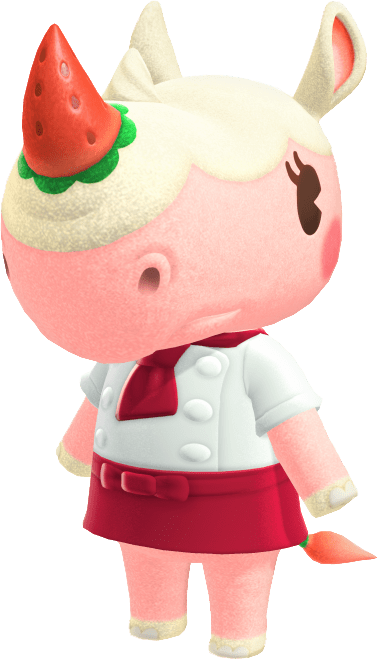 Een mooi uiterlijk, een huis dat eruit ziet als een bakkerij en een villager die zorgzaam is? Dat is Merengue in een notendop. Haar uiterlijk is bovendien prachtig, met karakteristieken van een neushoorn waarbij de staart en hoorn vervangen zijn met een aardbeitextuur. Dit is een villager die hoe dan ook een fijne toevoeging is.