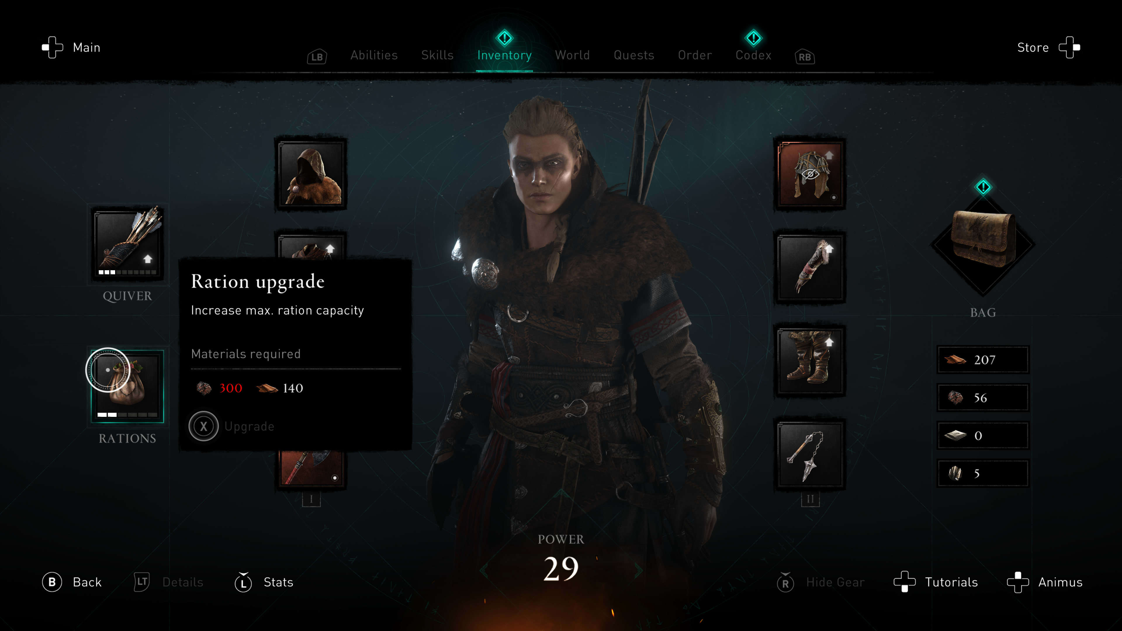 Tijdens het raiden kun je het soms heel erg moeilijk krijgen. In Valhalla krijg je over tijd geen health terug, waardoor je enorm afhankelijk bent van voedsel zoals bessen die je kunnen helen. Tijdens een zwaar gevecht is het niet altijd gemakkelijk voedsel te spotten en scoren. Daarom raden wij aan de capaciteit van je rugzak, je ration, te maximaliseren. Zo kun je voldoende voedsel meenemen voordat je aan een groot gevecht begint.