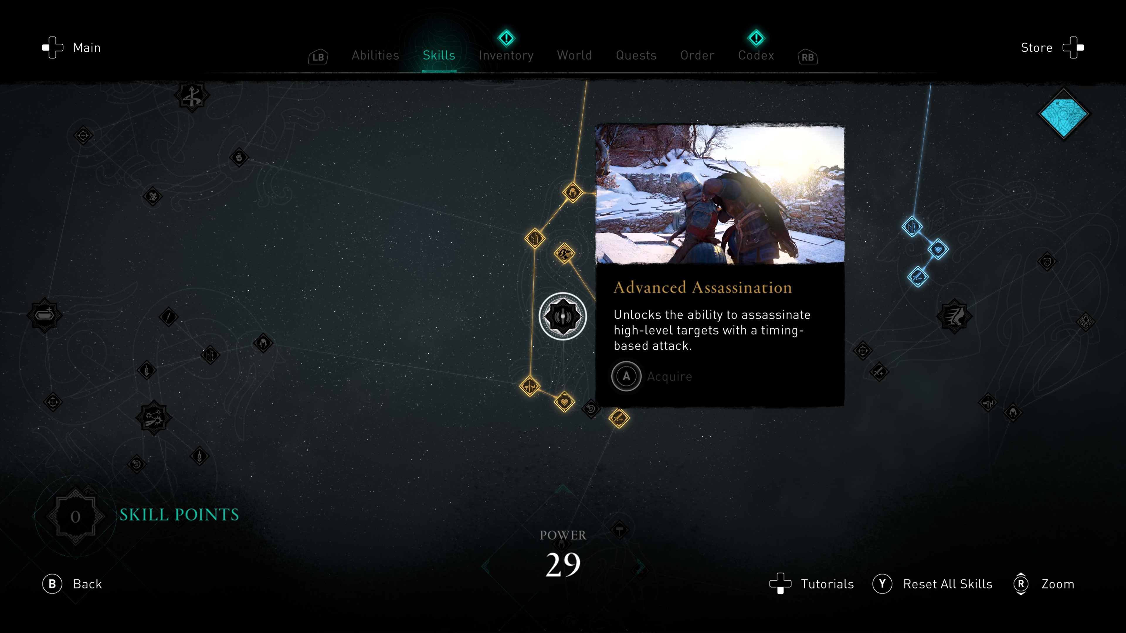 In Valhalla bevindt zich uiteraard weer een zogeheten skill tree, waarin jij vaardigheden kunt kiezen die bij jou passen. In Valhalla zijn er drie hoofdpaden; die van de Wolf voor boogschieten, die van de Raven voor sluipmoord, en die van de Bear voor de gevechten die je vooral met melee-wapens voert. Het leuke in Valhalla is, is dat niet alle opties van tevoren bekend zijn.