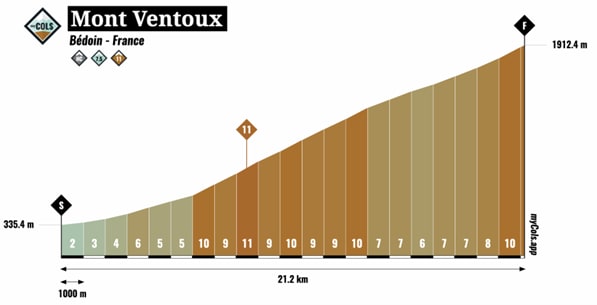 - Lengte: vanaf Bédoin 21.8km