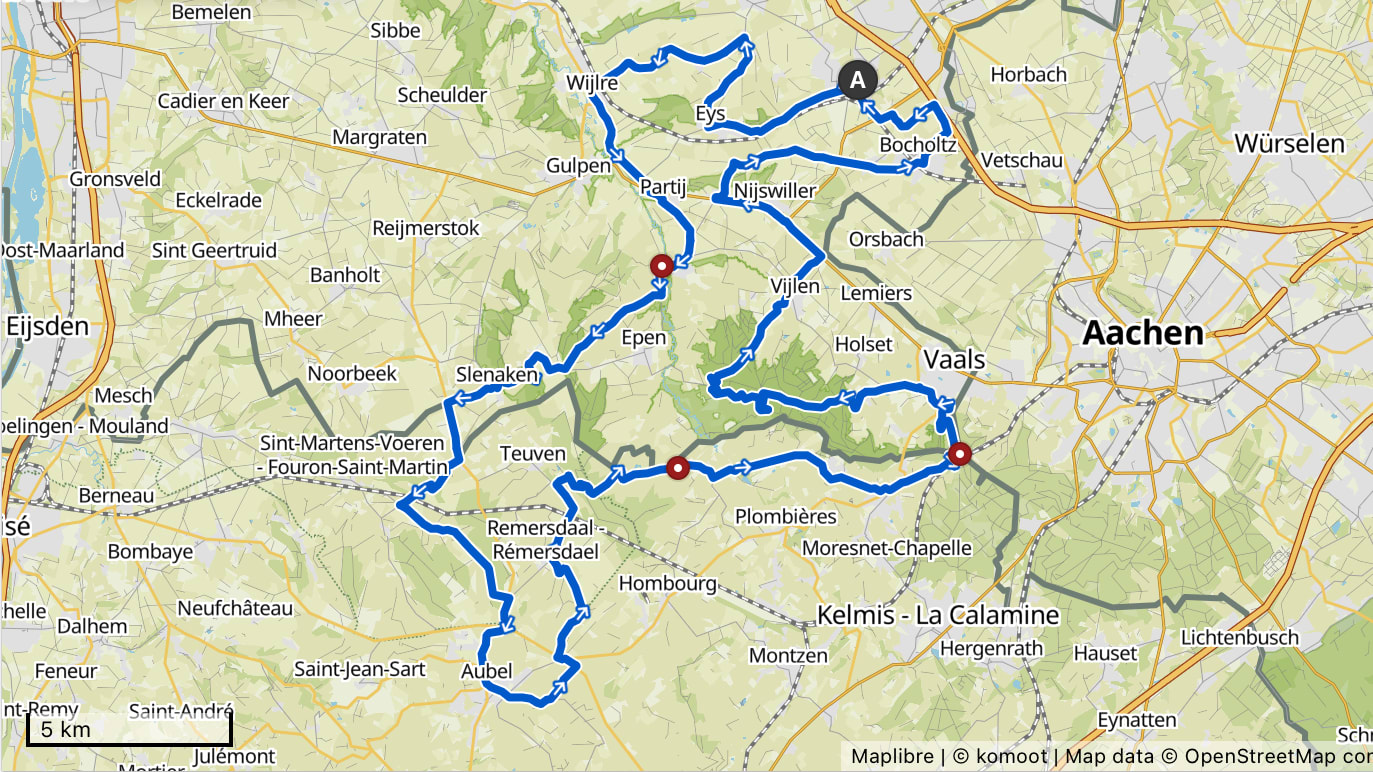 Limburg kan eigenlijk niet uit het lijstje ontbreken. Want waarschijnlijk is dit een van de meest populaire bestemmingen voor een weekendje wielrennen. Zeker als je kijkt naar het aantal toertochten dat er jaarlijks verreden wordt. Met deze route gaan we ook nog eens de grens over. Eens kijken of er daar wat extra hoogtemeters te vinden zijn 📈