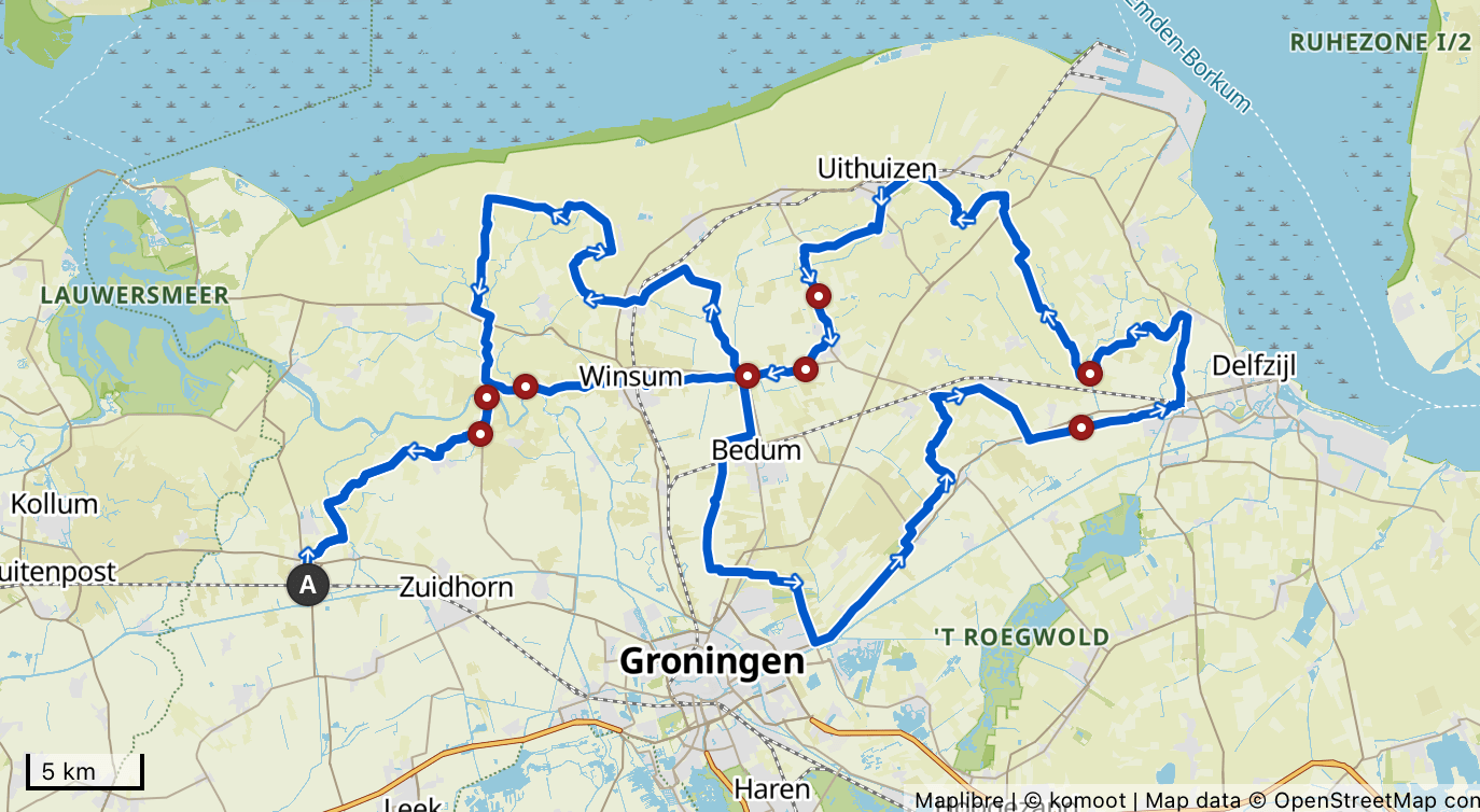 Deze ronde had je voor 1957 alleen per waterfiets kunnen doen. Het blijft bijzonder dat deze provincie toen gewoon niet bestond. Nu gelukkig wel, dus er kan volop gefietst worden. Zorg wel dat jij en je bike in topconditie zijn, want de afstand liegt er niet om!