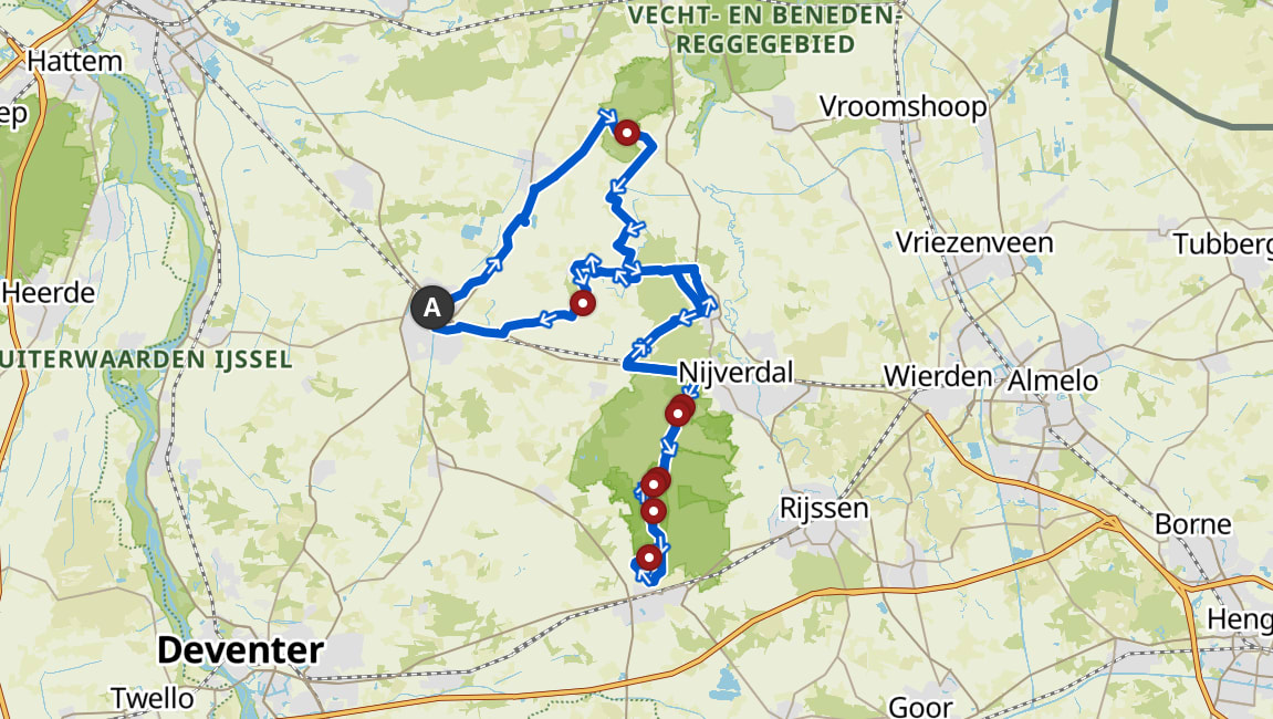Verzamelen in Raalte, daarna op het gemak warmtrappen en daarna wat leuke klimmetjes pakken bij de Sallandse Heuvelrug. Klinkt als een prima dag in het zadel, toch? De route is niet mega lang, en toch ben je wel een middagje lekker sportief bezig. Het gebied waar je doorheen komt is populair bij wielrenners, zal dat een reden hebben?