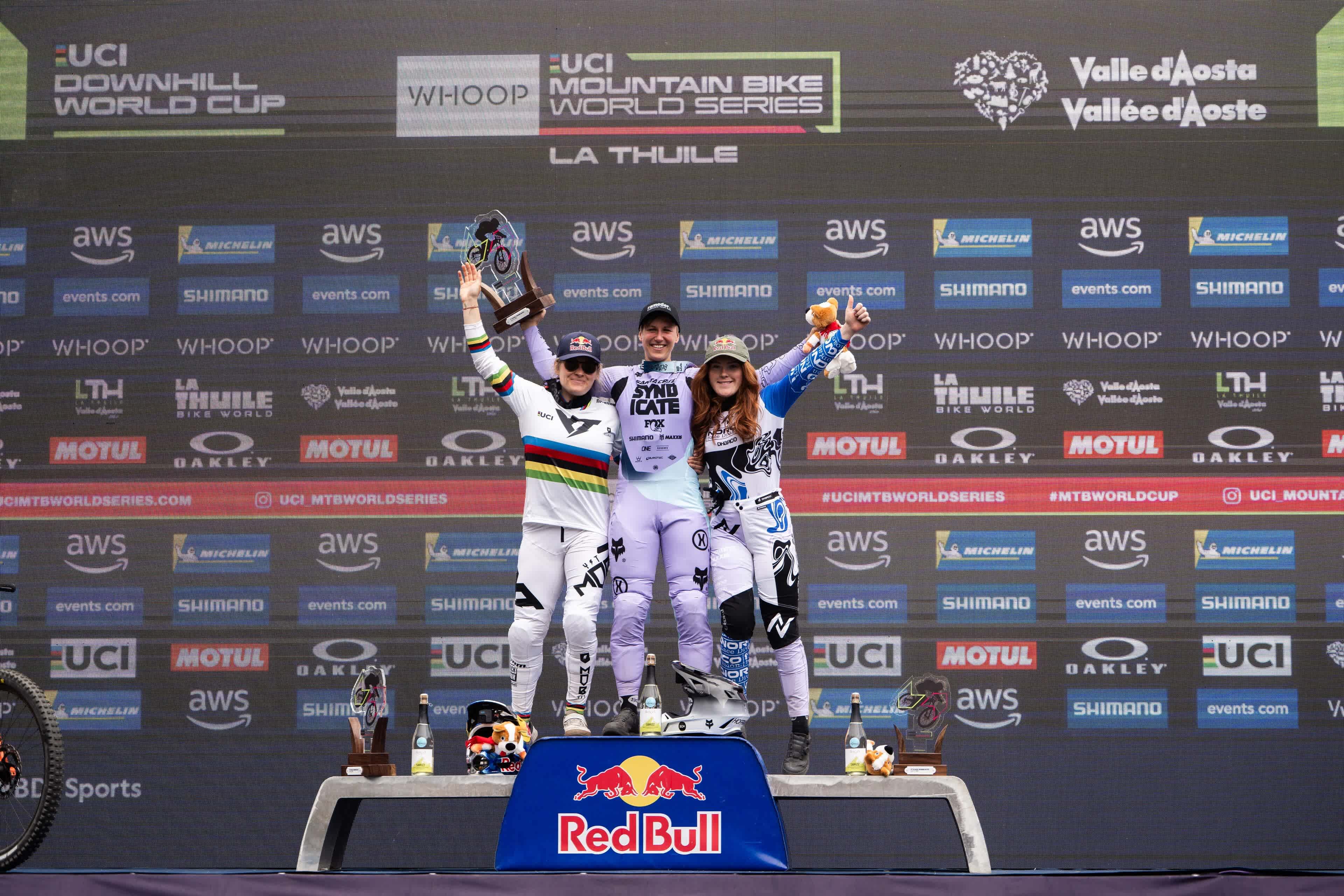 Eerder wist de Duitse Nina Hoffmann bij alle splits in de top twee te blijven en zo de overwinning in de vrouwen-downhill te pakken met een tijd van 3 minuten en 57,934 seconden. De Oostenrijkse Vali Höll en de Canadese Gracey Hemstreet finishten sterk en verzekerden zich van de overige podiumplaatsen, terwijl de Britse Tahnée Seagrave terrein verloor nadat ze in de eerste twee sectoren de beste tijden had neergezet.