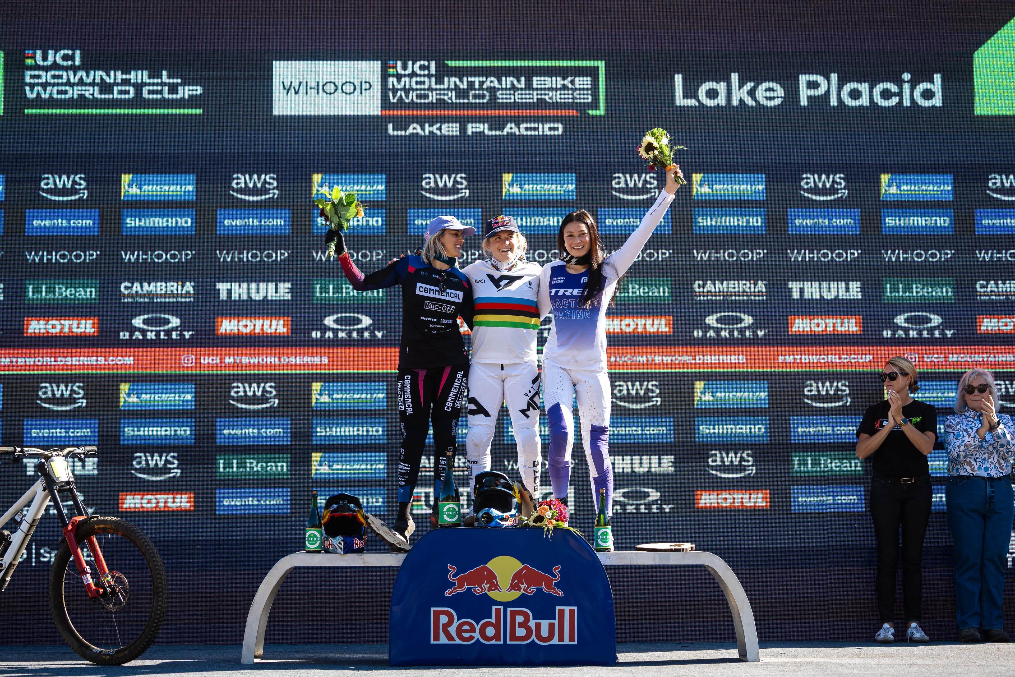 Vali Höll behaalde in Lake Placid haar eerste overwinning in de UCI Mountainbike Wereldbeker in meer dan een jaar, tot groot enthousiasme van het publiek. Met die zege verzekerde ze zich van haar vierde downhilltitel, terwijl de Canadees Jackson Goldstone vóór rivaal Loïc Bruni eindigde om hun titelstrijd tot de laatste ronde spannend te houden.
