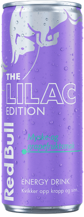 Red Bull Lilac Edition med smak av rosa grapefrukt, toppet med subtile blomsternoter.