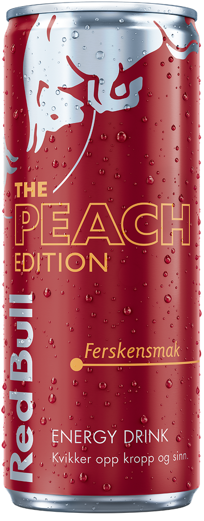 En boks Red Bull Peach Edition på 250 ml inneholder 80 mg koffein, om lag det samme som i en vanlig kopp kaffe.