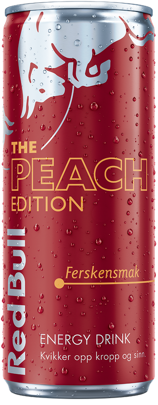 En boks Red Bull Peach Edition på 250 ml inneholder inneholder 27 g sukker.