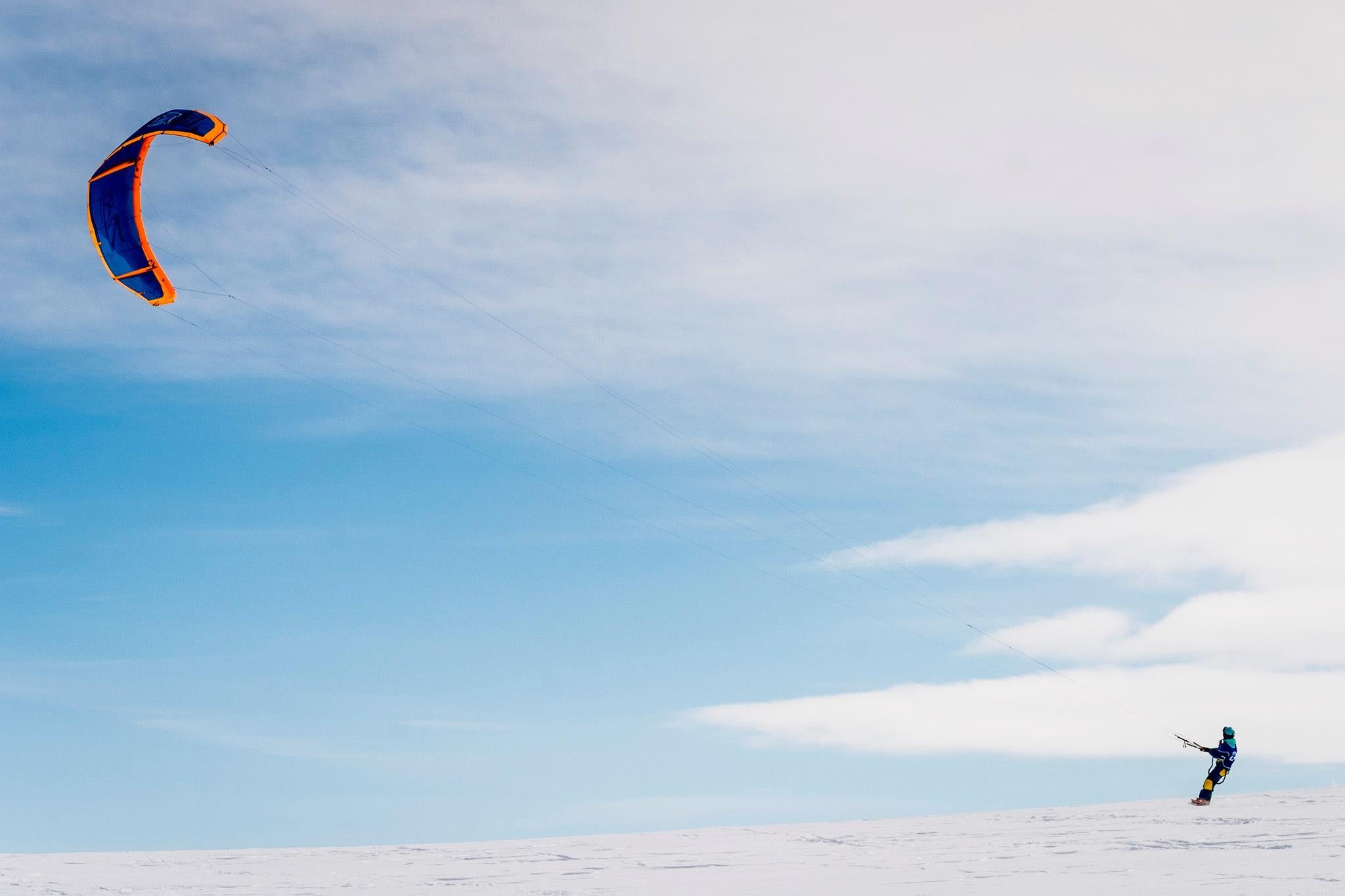 In just a few hours the weather went from sunny and windy, to cloudy with no wind at all, until it finally picked up again. Choosing the right kite and strategy was the key to success, and Peter Martel from Canada was the first male snowboarder to pass the finish line after five laps – finishing the course of a 100 kilometers in four hours and 49 minutes.