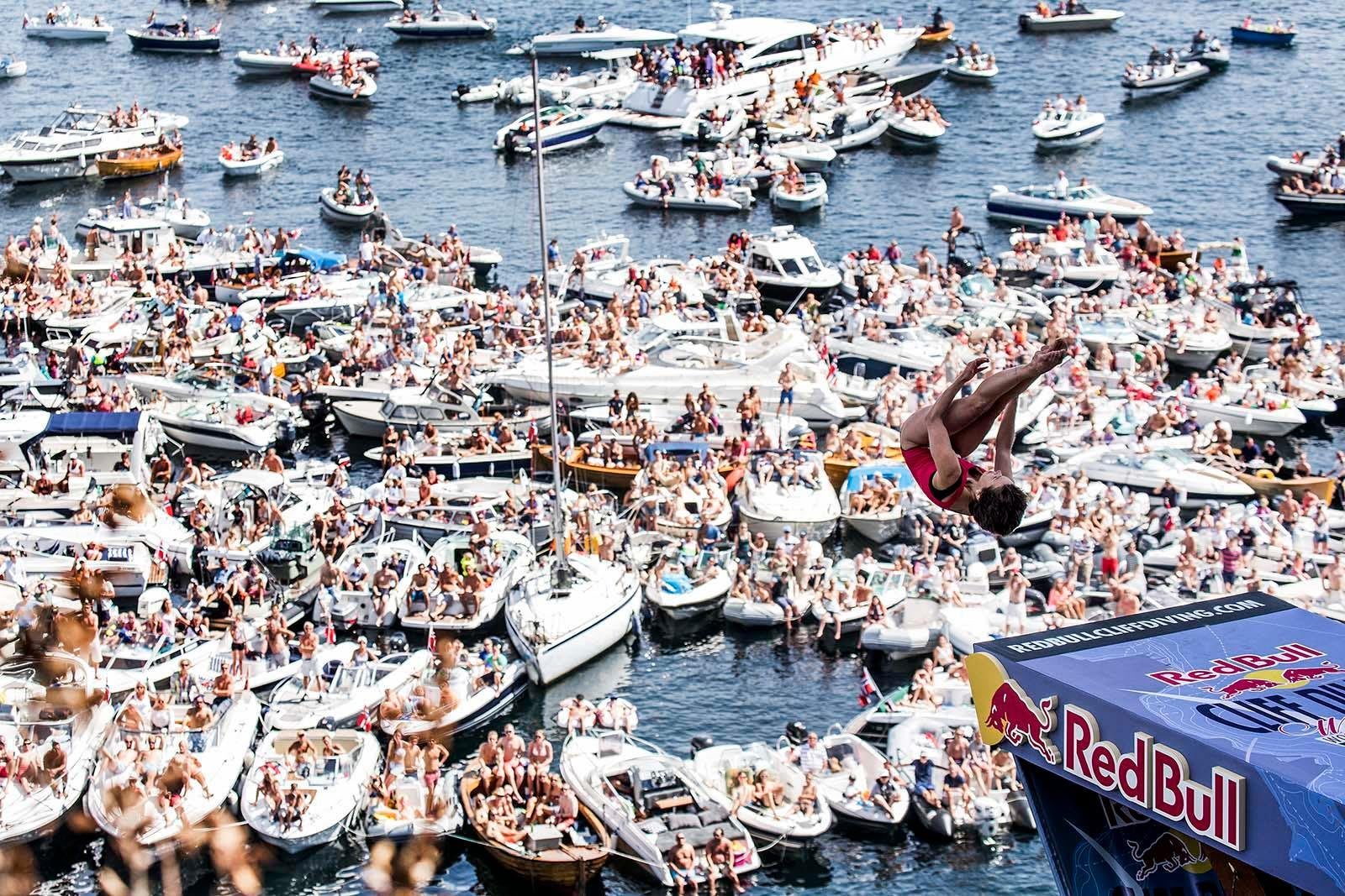 Den verdensomspennende klippestupe-serien Red Bull Cliff Diving byr på høytsvevende og akrobatiske stup fra operataket – 27 meter over havoverflaten.