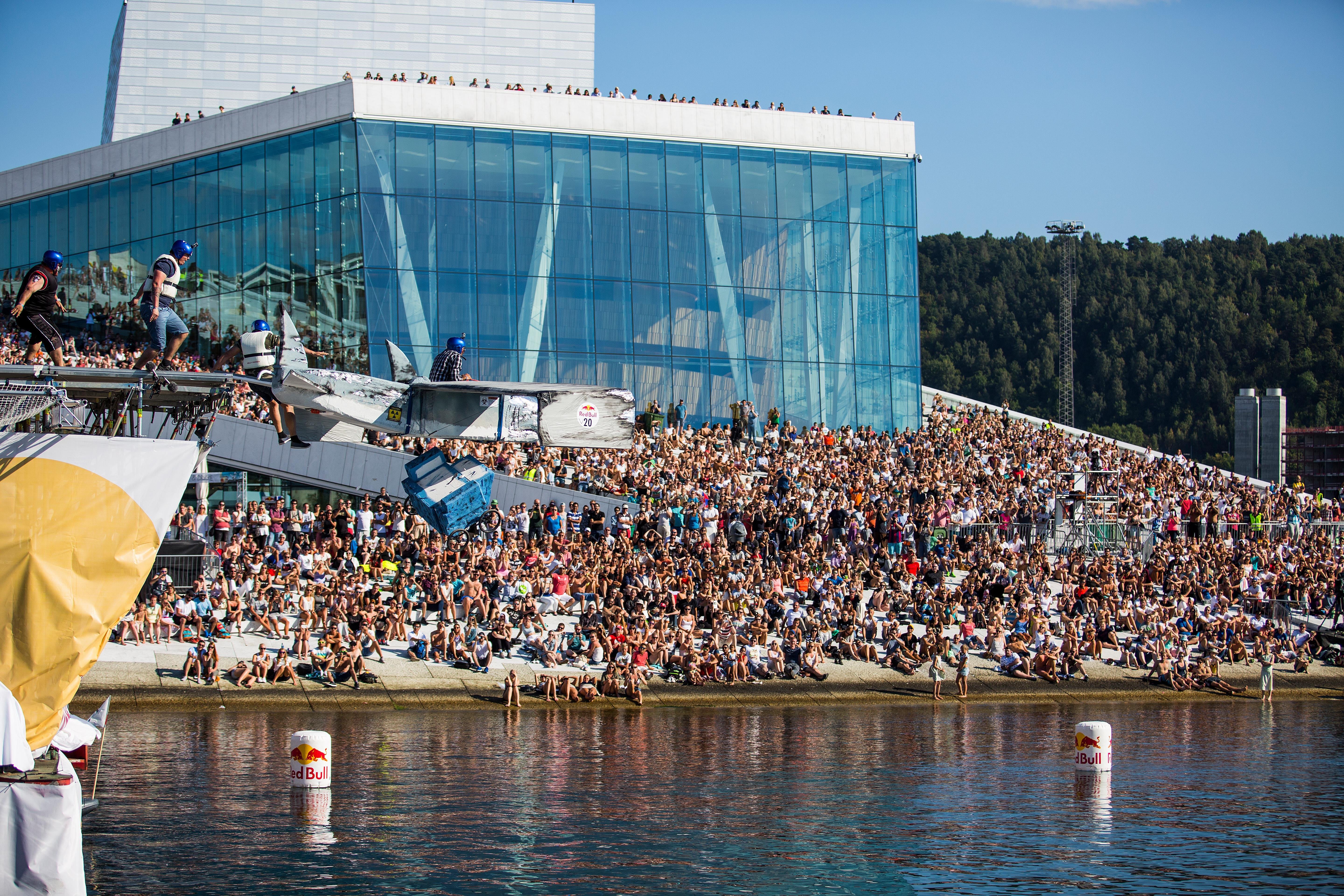 I 2015 var det folkefest da tusenvis av mennesker samlet seg på Operaen for å se kreative flyvende fartøy sette utfor en seks meter høy rampe i Red Bull Flugtag. I showkonkurransen var det om å gjøre fly lengst mulig: