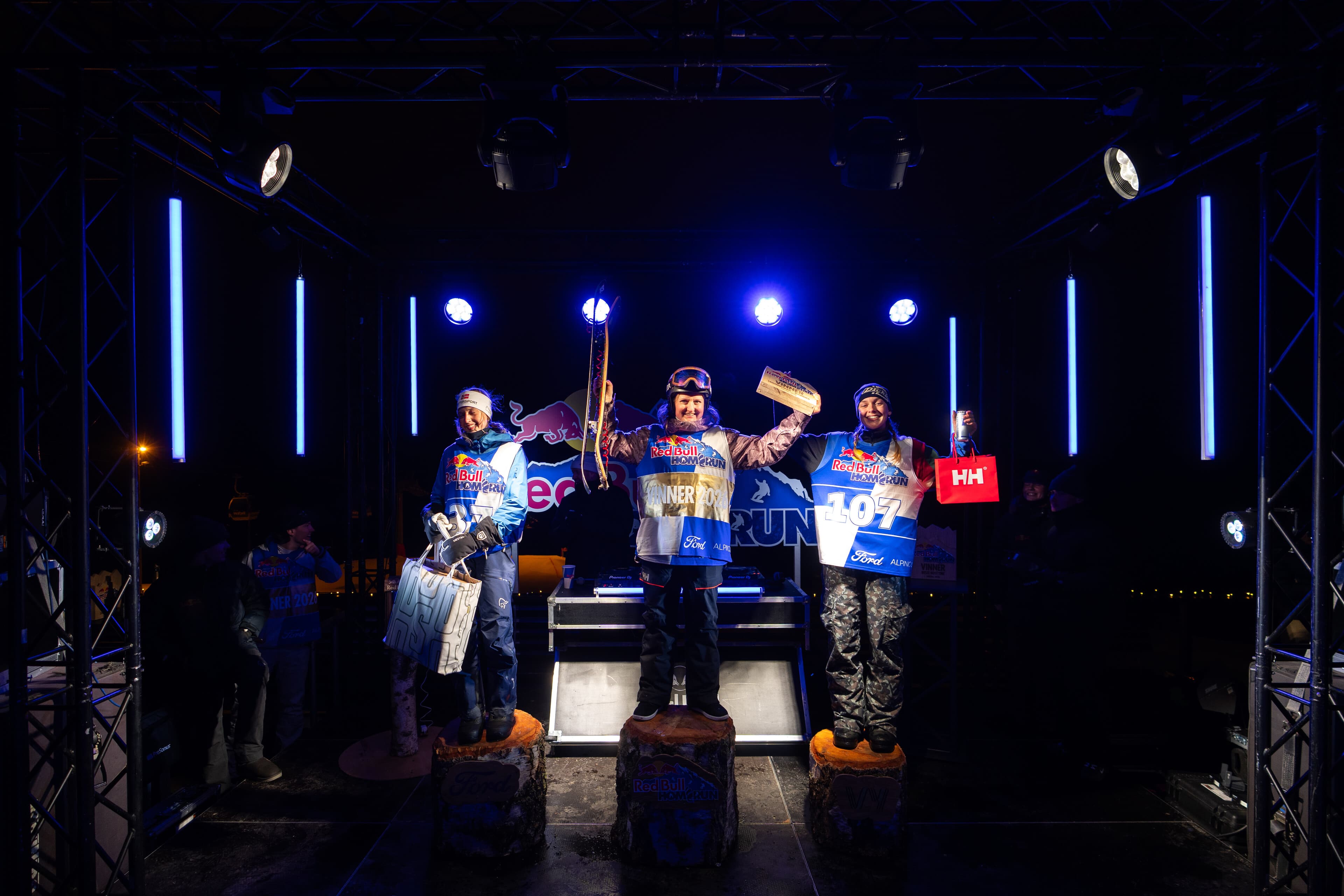 Et av kveldens mest spesielle innslag var Christine Tybring-Torsk og Emil Sørgård, som begge forlot det trygge utstyret i hver sin klasse: Tybring-Torsk som kjørte spinvilt på snowskate og vant sin klasse, og Sørgård som første deltaker noensinne stilte på langrennski – med fri hæl og smale planker midt i Red Bull Homerun-kaoset.