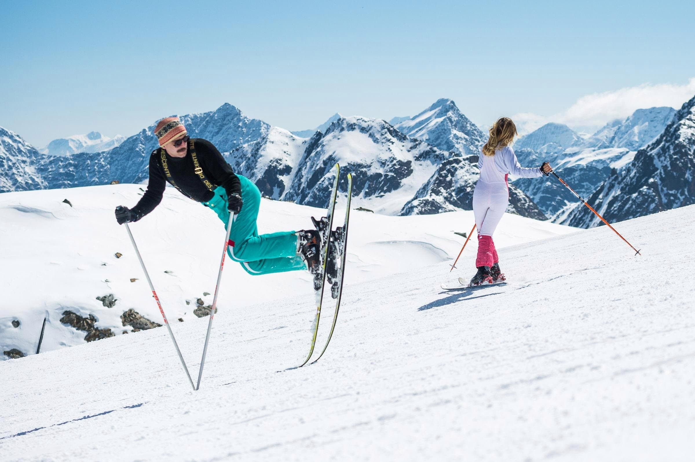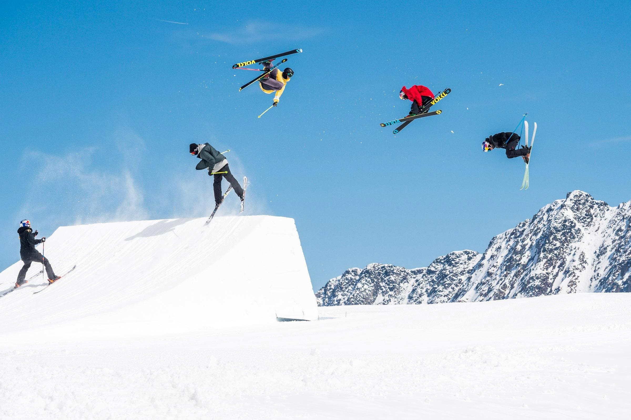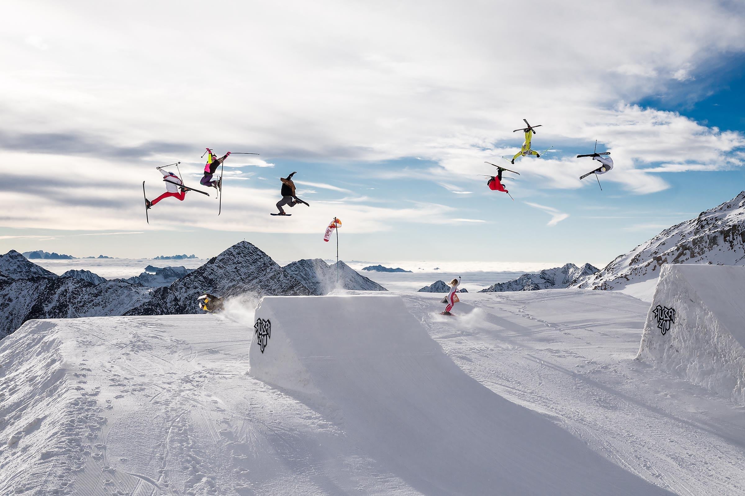 And if you're making a film about freeskiing, you can't leave out the daring tricks on rails and stairs that dominate urban skiing. Representing this style is Swedish jibbing specialist Jesper Tjäder, who shows some creative moves at the new 3S Eisgratbahn at the Stubai Glacier.