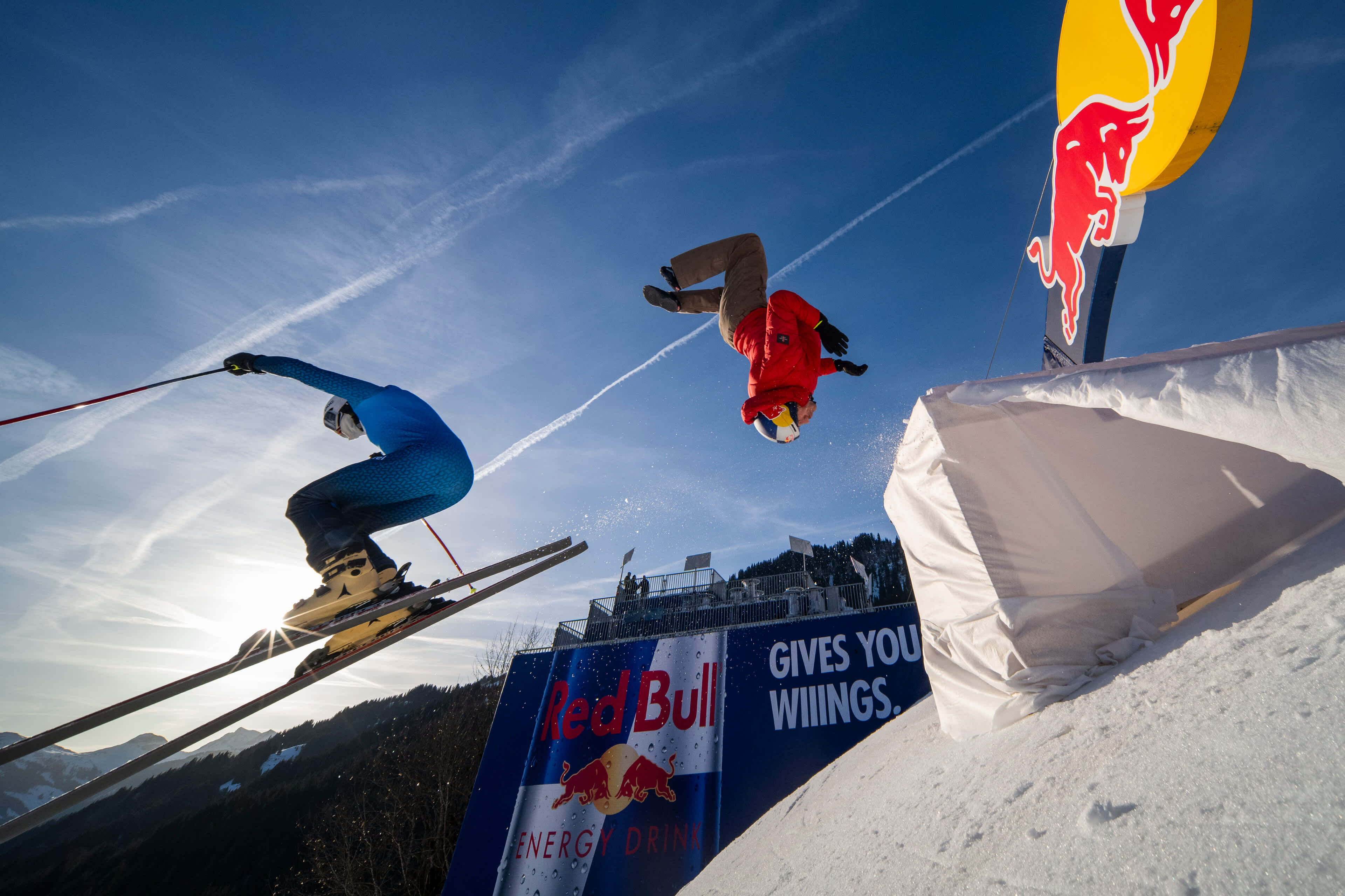 Paul finished where the downhill racers do – in the Kitzbühel finish area. But instead of fighting for 100ths of a second, he slowed things down, throwing clean flick-flacks into the snow.
