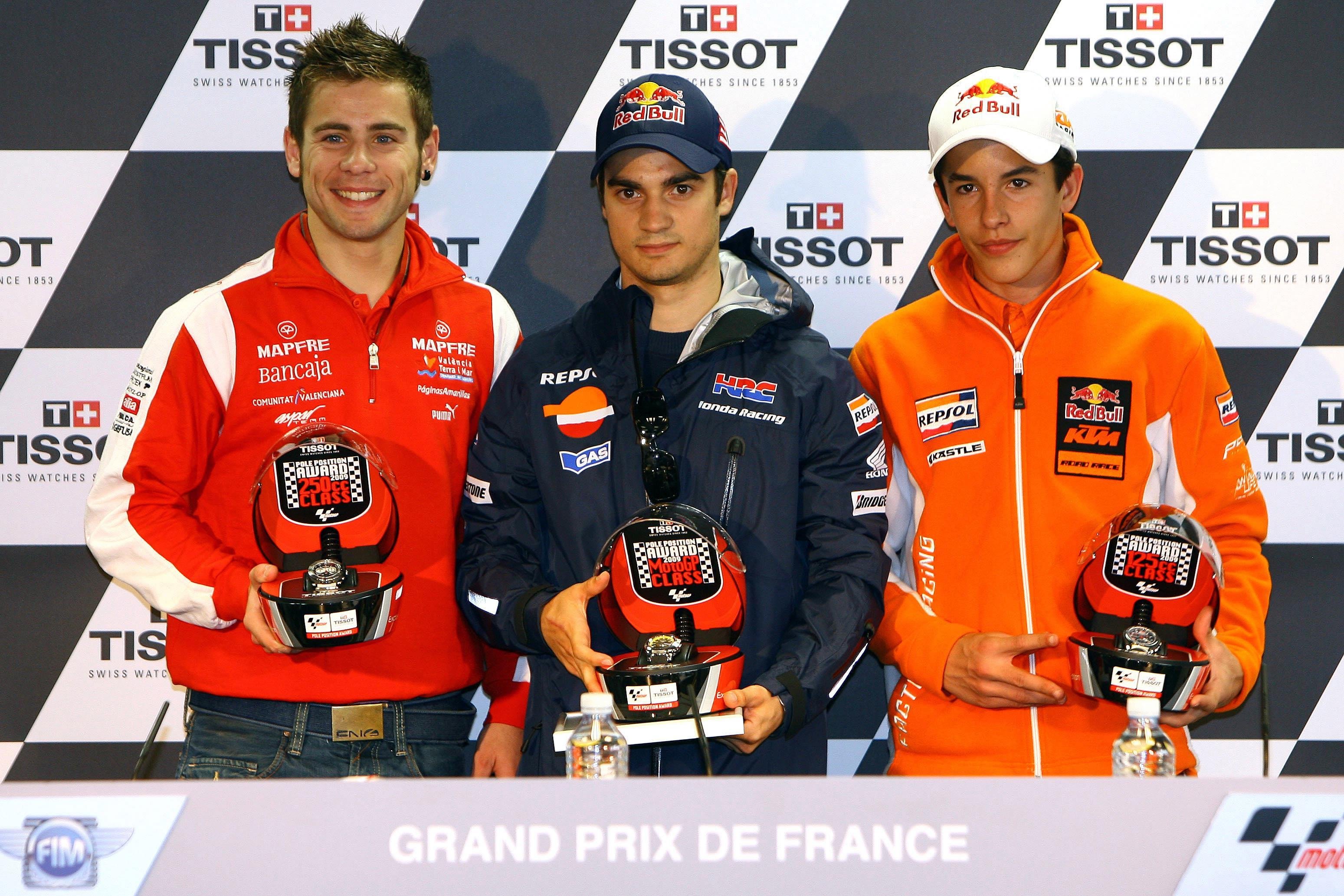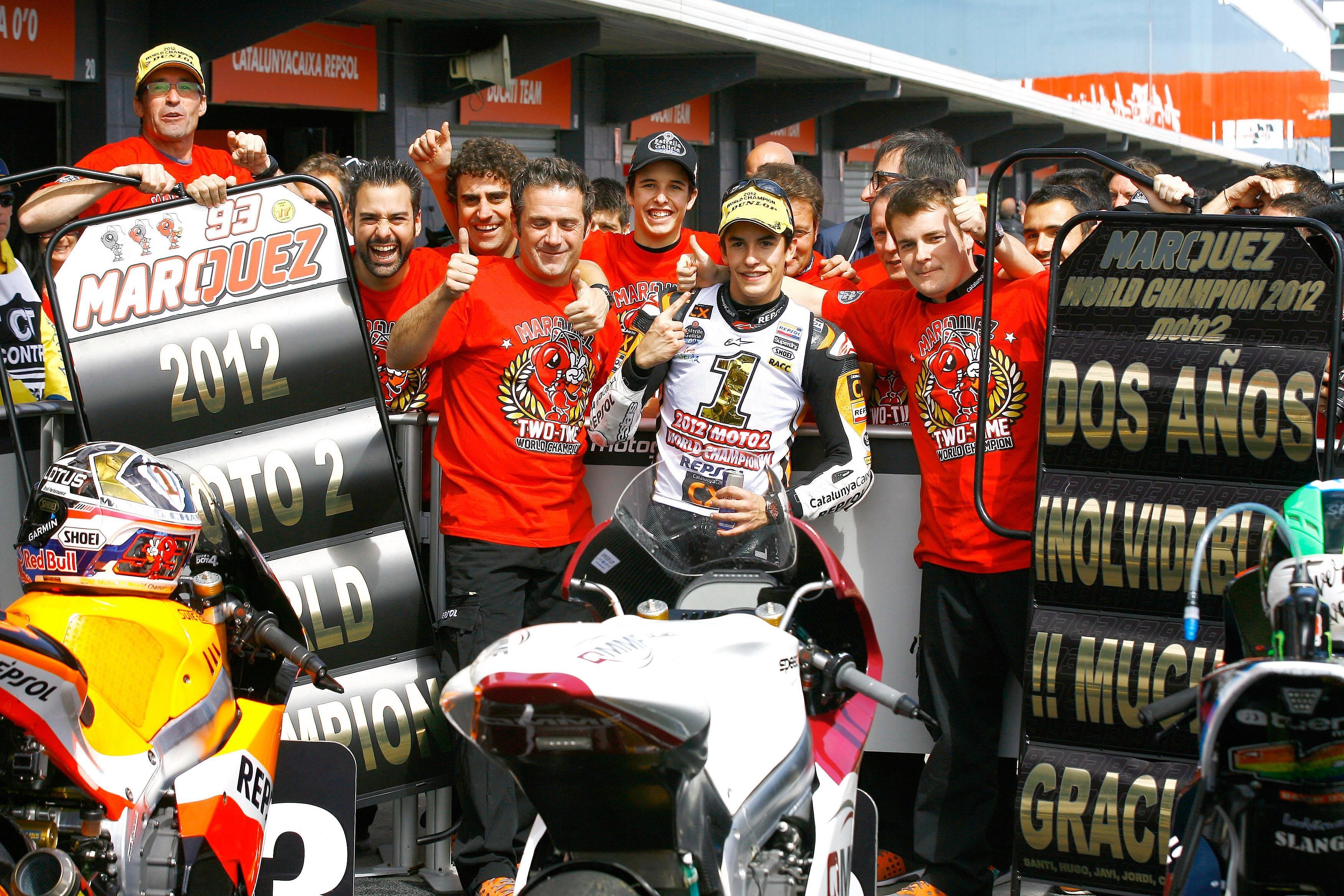 Sin embargo, su ímpetu lo superó y se estrelló en Losail, fue eliminado en la siguiente carrera en Jerez y luego cayó de nuevo en Portugal. Fue un duro inicio en la categoría para Márquez, pero aprovechó bien la experiencia y en la siguiente carrera ganó su primer GP de Moto2 en Francia. A partir de ahí, las victorias se multiplicaron y para cuando el Campeonato llegó a la penúltima ronda en Malasia, ya tenía siete victorias y estaba luchando por el título con Stefan Bradl.
