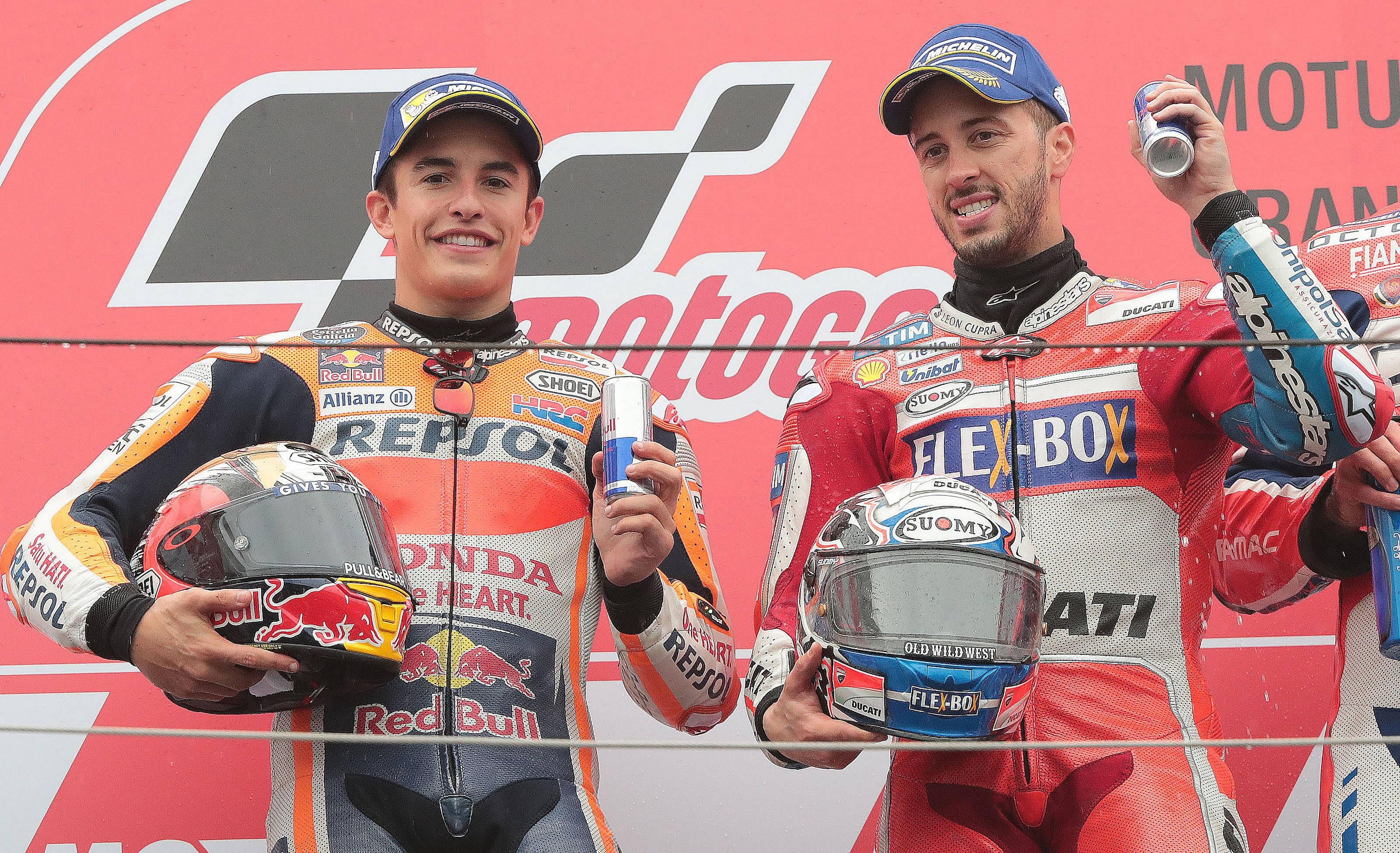 A finales de temporada, el valiente desafío de Ducati fue asumido por Dovizioso, ya que el compañero de equipo, Jorge Lorenzo, terminó lesionado. Sin embargo, en el Gran Premio de Japón, en el Motegi Twin Ring, fue todo menos una formalidad que Márquez consiguiera su quinto título mundial de MotoGP.