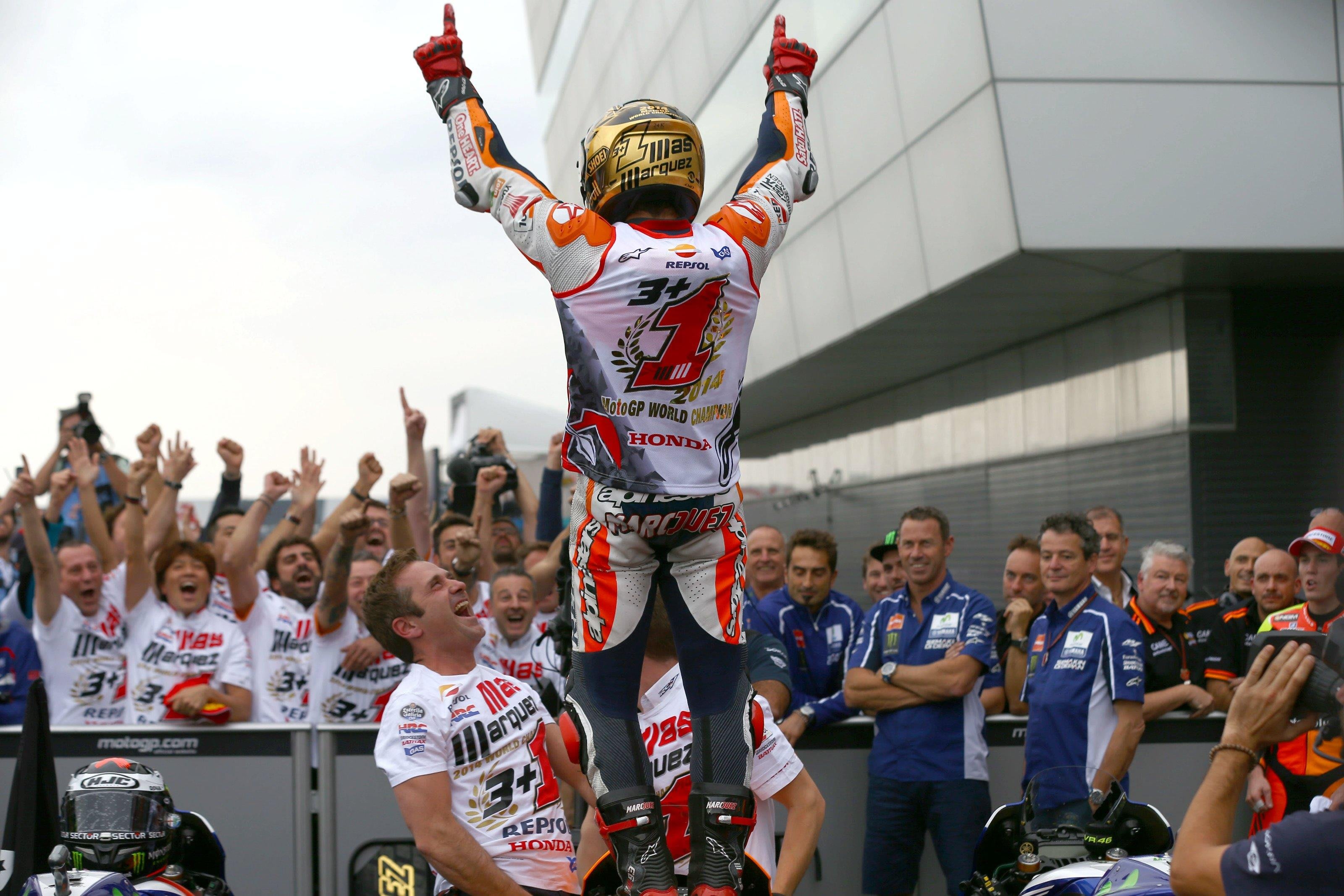 Márquez ganó la siguiente carrera en el Circuito de las Américas y ganó cinco carreras más, consiguiendo su primer título de MotoGP en la última prueba del campeonato, superando a Jorge Lorenzo por 34 puntos y convirtiéndose en el primer novato en conseguirlo desde Kenny Roberts en 1978.