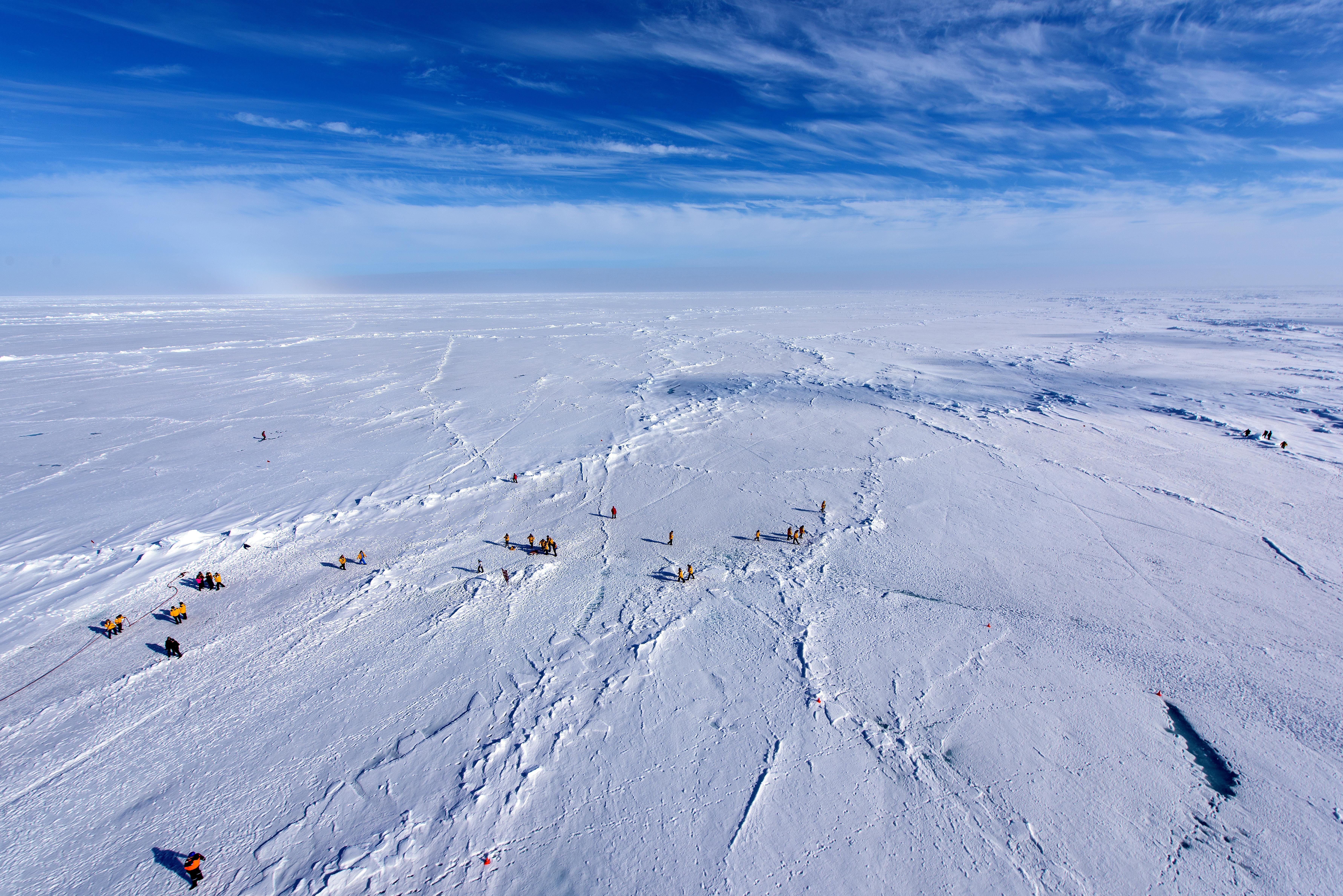 Solo hay dos pequeñas ventanas en el año para ir: abril o finales de junio. En invierno es completamente de noche, pero desde que aparece el sol los rusos montan su base en Barneo a 60 millas (97 km) del Polo Norte.