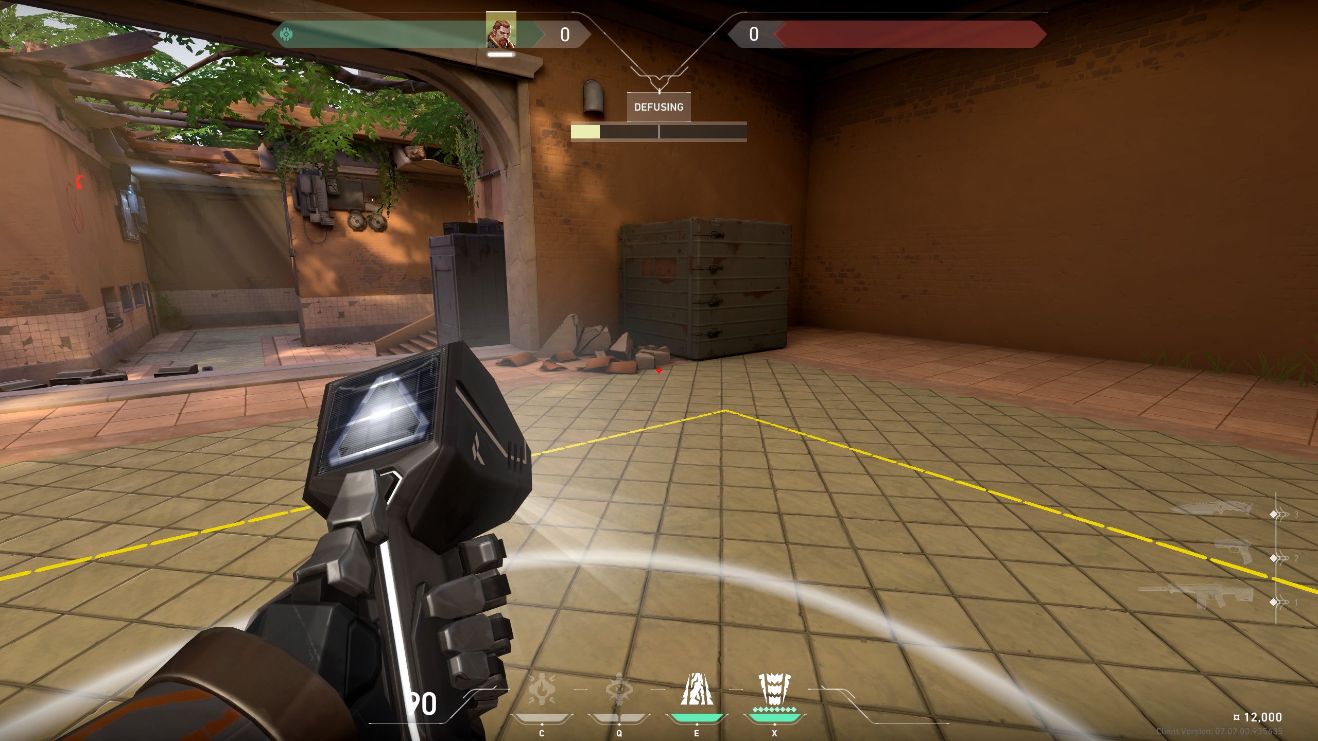 Una vez que estés en el sitio tendrás que plantar el Spike. Cuando estés en la zona, la opción de plantar aparecerá en tu pantalla con la indicación de mantener pulsado 4. Plantar el Spike te llevará cuatro segundos. Tras colocar el Spike con éxito, el portador ganará un punto definitivo, lo que le facilitará la obtención de su habilidad definitiva online. Además, al plantar el Spike, tu equipo ganará 300 créditos para la siguiente ronda. Así que, aunque hayas ganado la ronda por eliminación, deberías plantar el Spike para conseguir los créditos extra.