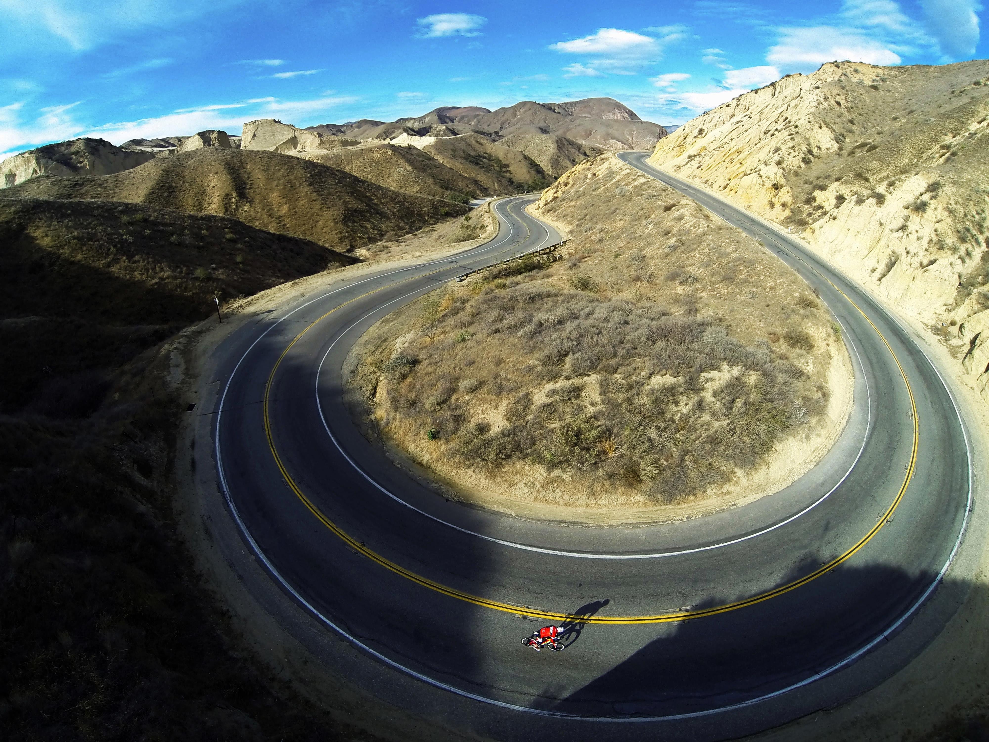 Hairpin curves can be both a blessing and a curse. They're a good way for you to recover your breathing on a climb, but tackling them the wrong way will see you lose momentum. Most hairpin bends have a steep inside line and a more gradual rise on the outside of the bend.