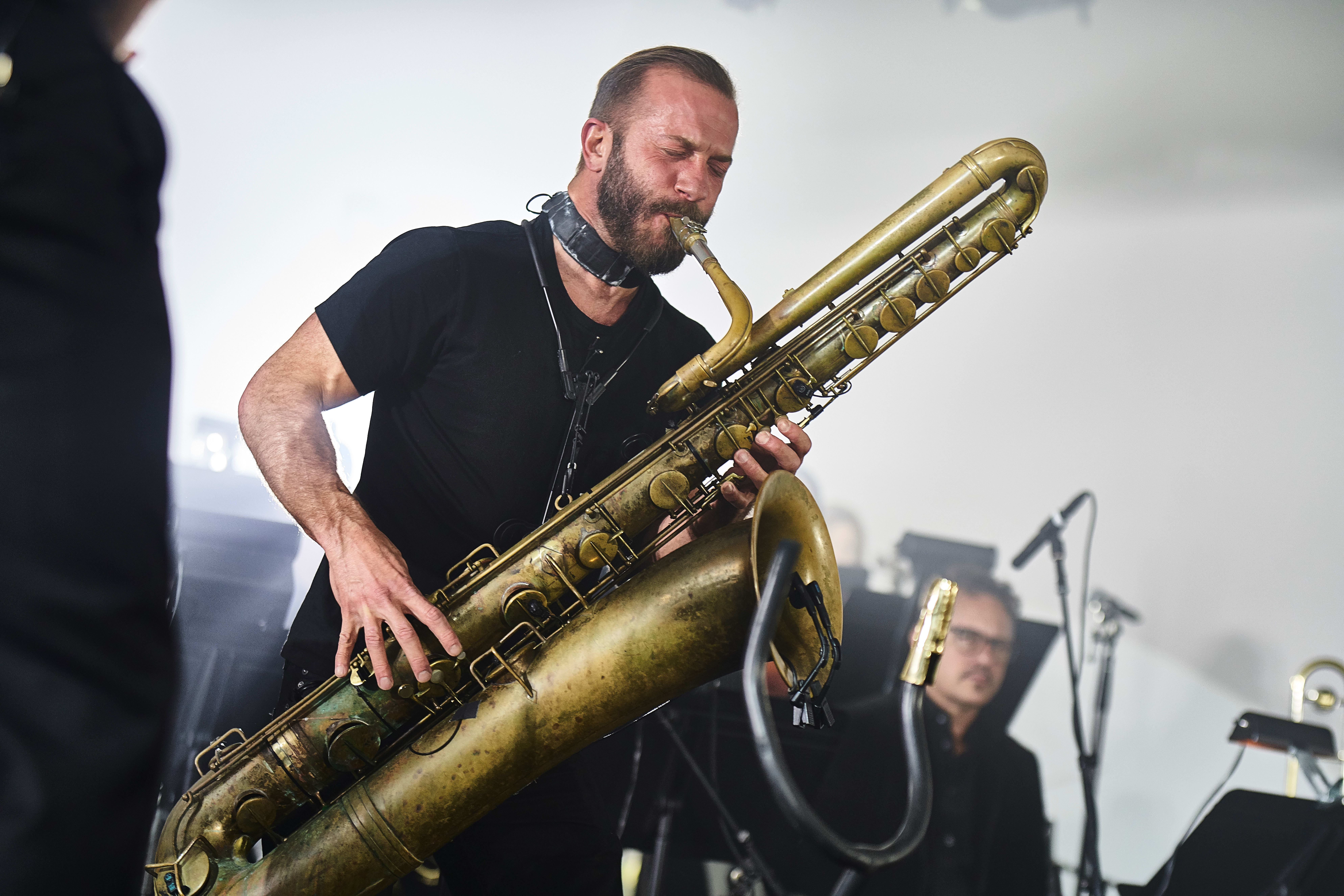 Colin Stetson’s bass saxophone solo came bursting with passion and unrivaled energy. Totally immersed in the music under flickering lights, Stenson captivated the audience in a performance that might as well be called the highlight of the show.