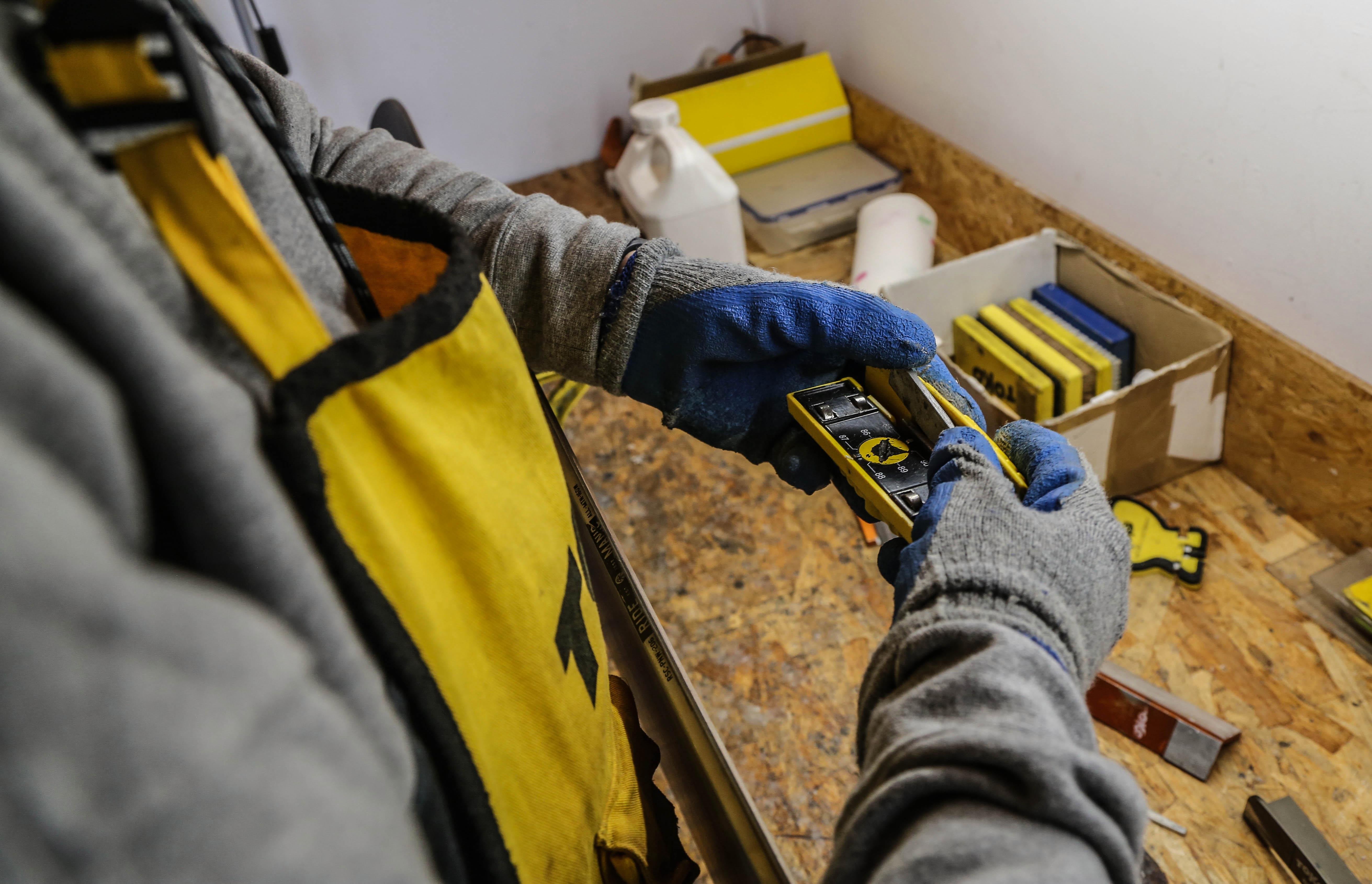 4. Ostrzenie. Pracujemy z pilnikami o różnej gradacji (ziarnistości). Zaczynamy, grubym – jeśli krawędź jest bardzo nierówna i w kiepskim stanie, a chcemy ją przywrócić do idealnego porządku używamy raszpli. Kończymy drobnym pilnikiem i na końcu wygładzamy pilnikiem diamentowym.