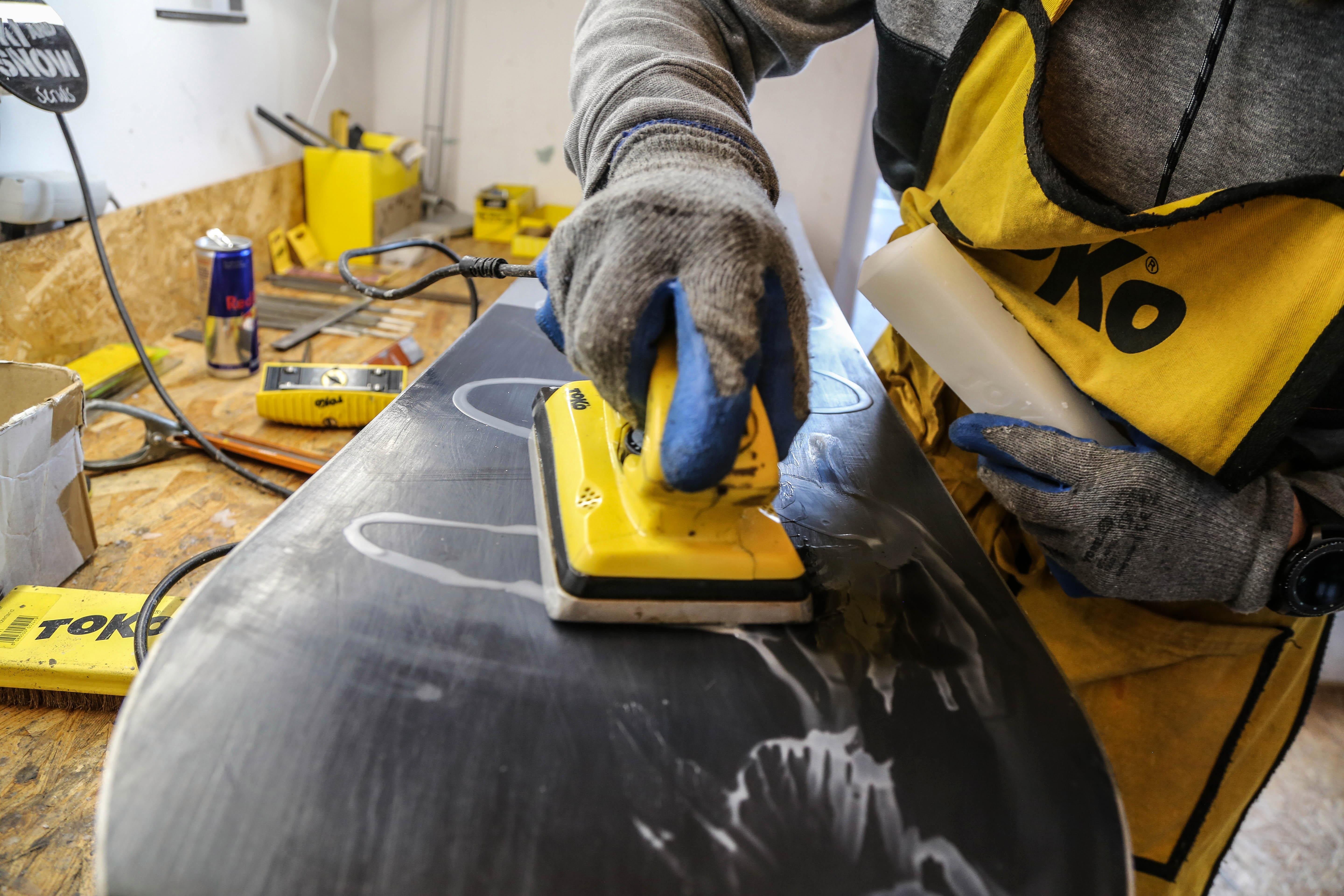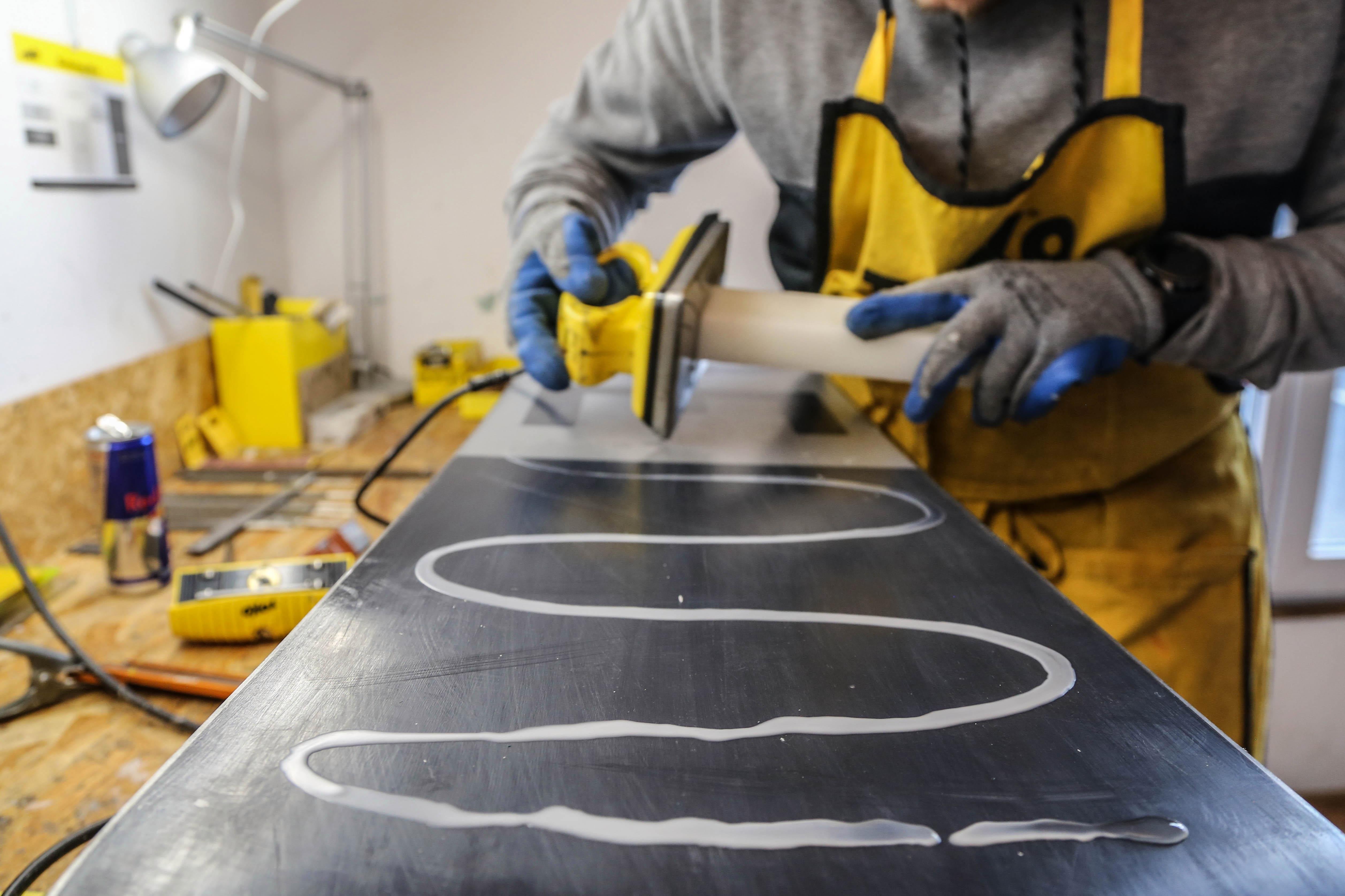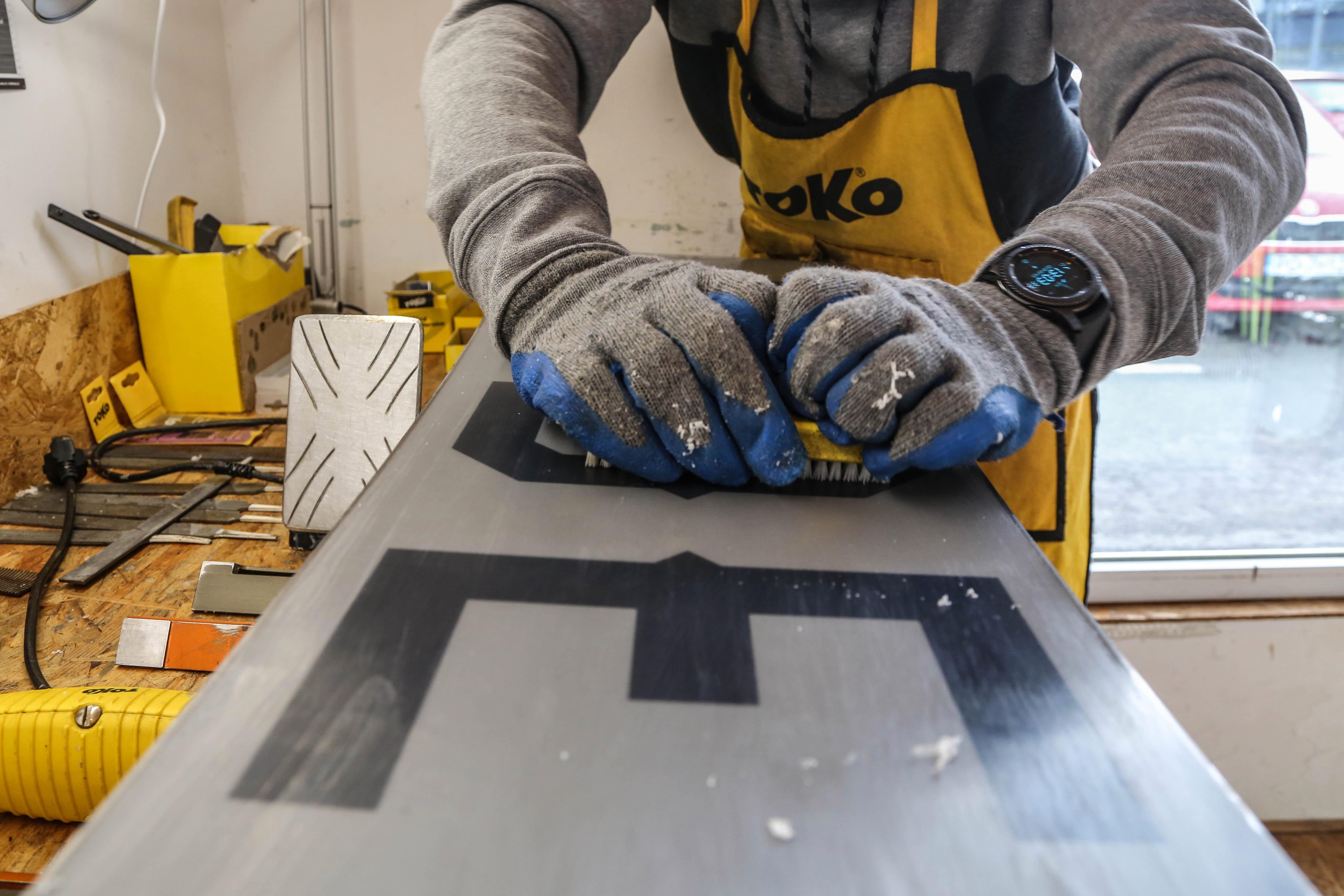 10. Polerka i gotowe! Następnie wygładzamy powierzchnię za pomocą szczotek o różnej twardości. Tak wyszczotkowana i wypolerowana deska lub narta jest gotowa do jazdy.