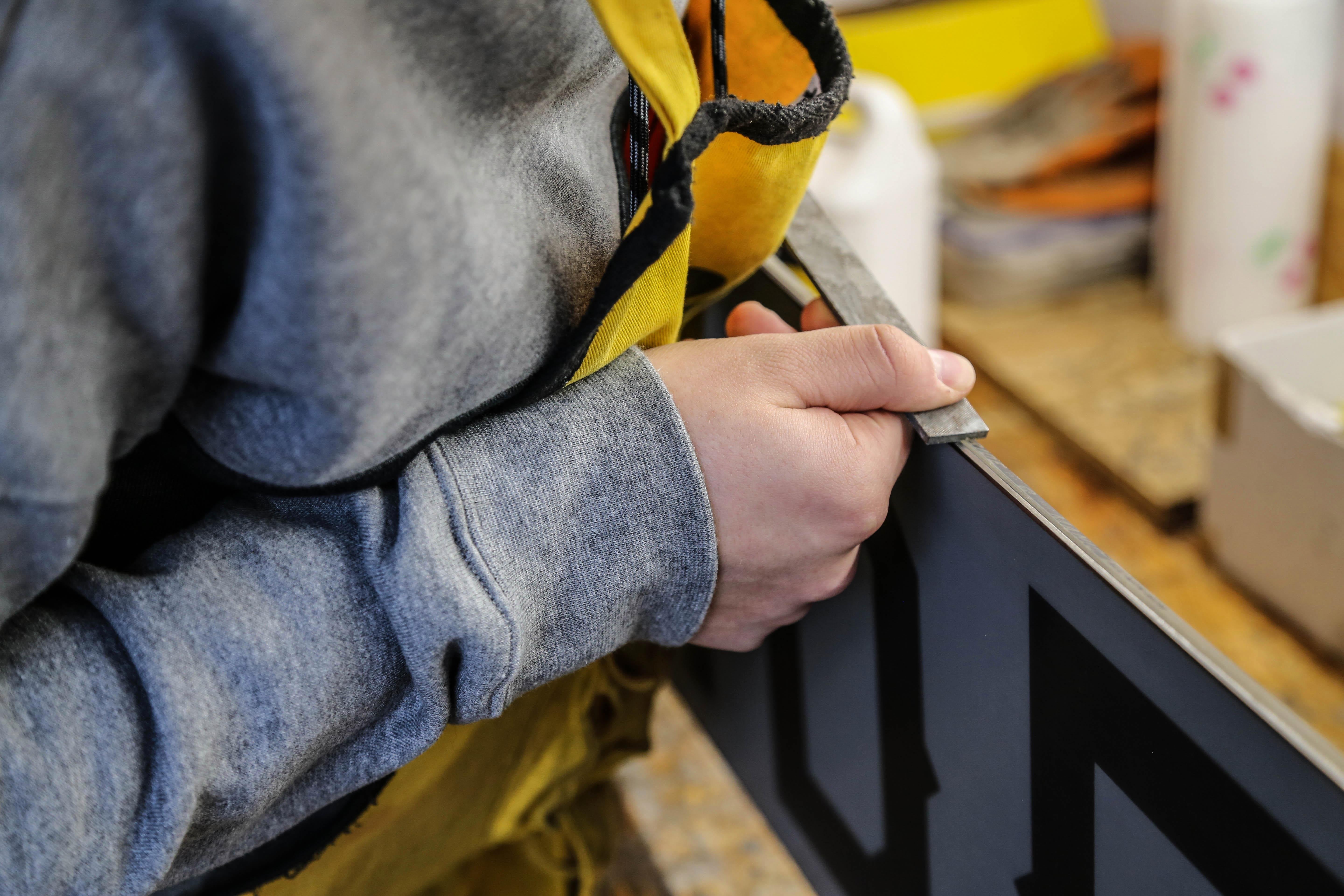 9. Cyklinowanie. W ostatnim etapie zbieramy nadmiar smaru za pomocą cykliny.