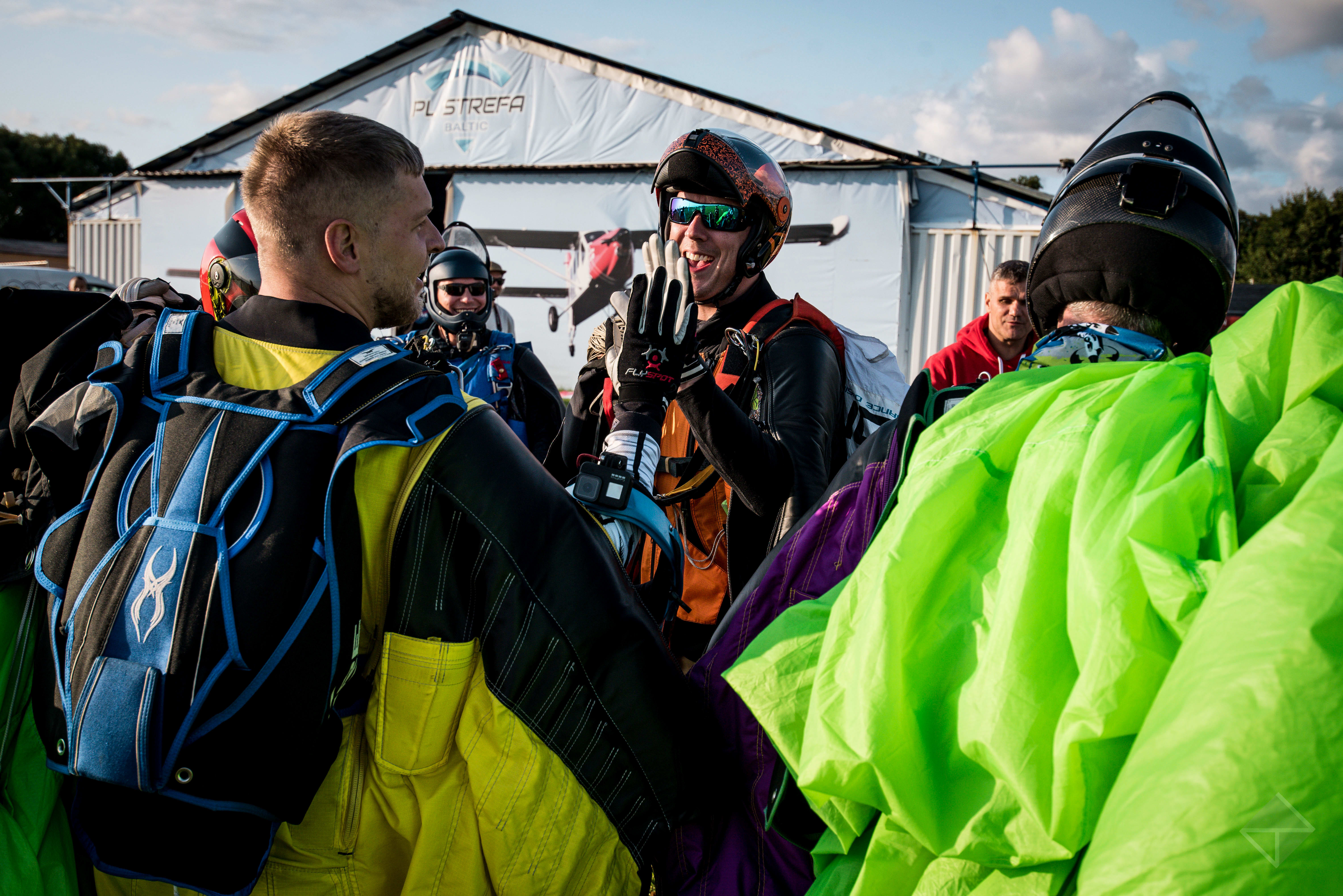 A co będzie w przyszłym roku? „Nie wiem, czy poprawimy rekord, ale na pewno jako Baltic Wingsuit Meet postawiliśmy ‘pina’ w kalendarzu dużych imprez spadochronowych. Na świecie, poza nielicznymi wyjątkami, nie ma czegoś takiego. Wingsuiterzy są często jakby przy okazji większych imprez lotniczych. Tutaj udało nam się zorganizować imprezę na poziomie światowym. Dzięki zaproszonym gościom i programowi, ludzie przez 5 dni nie wyszli z lotniska. Nawet gdy była zła pogoda, cały czas mieli zajęcie – na przykład prezentacje sprzętu dotyczące bezpieczeństwa i obsługi. Wywiązywały się długie dyskusje. Każdy mógł wnieść coś od siebie. Mieliśmy też super prezentację dotyczącą latania performance, czyli ścigania się w kombinezonach wingsuit. Ludzie przez dwie godziny siedzieli cicho i słuchali, co było nieprawdopodobne – tak ciekawie to było zrobione. Było już pewne zainteresowanie sponsorów. Choć nie mieliśmy od nich finansowego wsparcia, dostaliśmy kilka rzeczy – spadochrony zaprojektowane pod loty w kombinezonie wingsuit do testowania, nagrody do loterii itd. Na miejscu mieliśmy jedzenie, napoje a nawet saunę, gdzie skoczkowie mogli się regenerować. Mam nadzieję, że za rok będzie jeszcze lepiej”.