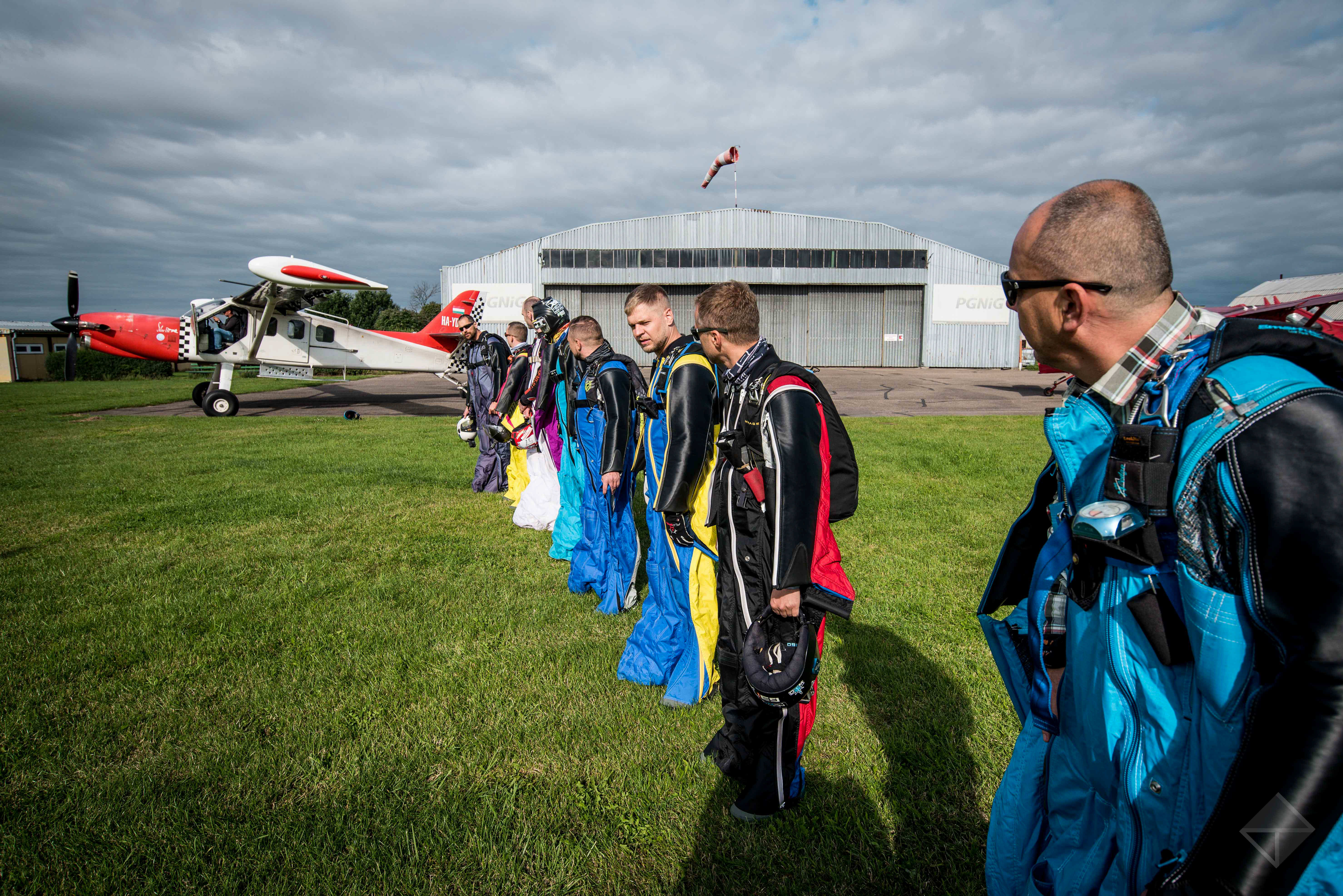 Ambitne plany organizatora krzyżowała pogoda. Z drugiej strony, to właśnie dzięki komplikującym plany warunkom atmosferycznym, bicie rekordu poszło dość sprawnie. „Pierwszego dnia podzieliliśmy ludzi na grupy. Ja odpowiadałem za AWF (Airplane-Wingsuit Formation), czyli latanie przy samolocie. Rob szkolił tych, którzy mieli mniejsze doświadczenie. A Daniel szybkich, żeby mogli rozwijać jeszcze większą prędkość” – relacjonuje Piotr. „Drugiego dnia, ze względu na pogodę, podjęliśmy decyzję, że musimy wszystko przyspieszyć. I już we wtorek wieczorem skakaliśmy z dwóch samolotów łącząc się w jedną formację lecącą nad Elblągiem. W ostatnim skoku podjęliśmy próbę połączenia tej formacji z samolotem, ale ze względu na zmęczenie nie daliśmy rady pobić rekordu świata. Za to rekord Polski (dop. ustanowiony podczas ubiegłorocznej edycji) tego dnia pobiliśmy przynajmniej dwa razy”.
