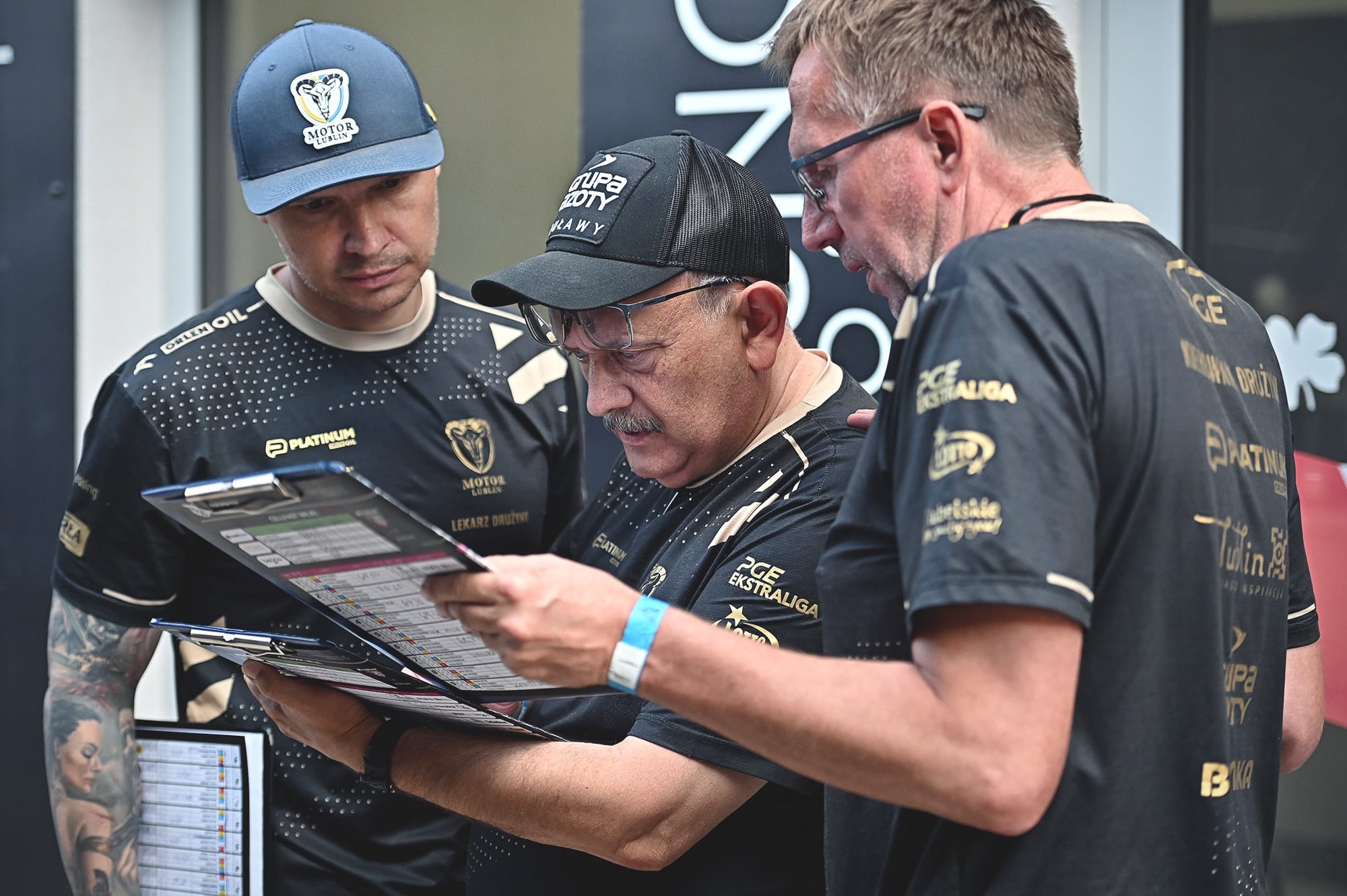 Przed meczem trzeba wybrać skład i przyporządkować numery startowe zawodnikom. To szalenie ważne, bo program żużlowy jasno determinuje, w których wyścigach i przeciwko jakim rywalom jedzie zawodnik spod danego numeru. Przy ustalaniu składu trzeba wziąć pod uwagę mnóstwo czynników: czy jedziemy w Lublinie, czy na wyjeździe, z jakim rywalem, na jakim torze, przy jakiej pogodzie, w jakiej formie na dany moment jest każdy z zawodników, kiedy wypuścić tych, którzy preferują starty, a kiedy tych lubiących walczyć na trasie itd. Drukuję sobie wiele wersji programu i po analizie wszystkich, konsultuję swoje propozycje z trenerem. Ustalamy skład i czekamy na mecz.