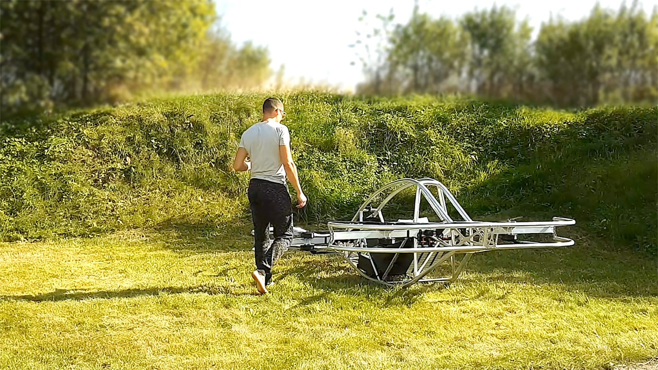 Bardzo modny jest teraz temat latających samochodów i latających taksówek. Pamiętam bajkę Jetsonowie, która dla wielu z nas była wyznacznikiem tego, co będzie w przyszłości. Ale już na początku założyliśmy, że nie będziemy starać się stworzyć takiego odpowiednika latającego samochodu, czy środka transportu dla populacji całego miasta, bo to absolutnie jeszcze nie jest ten czas. Chcieliśmy stworzyć możliwość zaznania bardzo przyjemnego uczucia latania, swobody, poruszania się w każdym kierunku. Z racji tego, jest to urządzenie bardziej podobne do skutera wodnego, czy do quada, gdzie w wolnym czasie można z niego skorzystać - pobawić się. Sporym ograniczeniem jest czas lotu, który w zależności od wagi pilota wynosi do 20 minut. Pilot maksymalnie może ważyć 110 kg. Przy wadze 85 kg, czas lotu wynosi 15 minut. Prędkość maksymalna w locie poziomym wynosi 100 km/h. Wysokość jest zależna od czasu lotu. Można założyć że przy 20 minutach moglibyśmy się wznieść na 1500 m, ale cała przyjemność z lotu jest największa na niskim pułapie, bliżej ziemi. Wątpię, żeby nasi użytkownicy mieli na celu wzbijanie się aż tak wysoko, bo cała frajda wynika z bycia relatywnie blisko ziemi, żeby poczuć prędkość i emocje z przemieszczania się nad terenem.